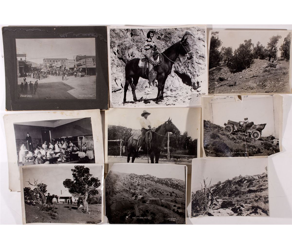 Lot of 11 photos of Goldfield, Round Mountain, Manhattan, Reveille Mountain, mines, miners, women at work sewing and others. -61045