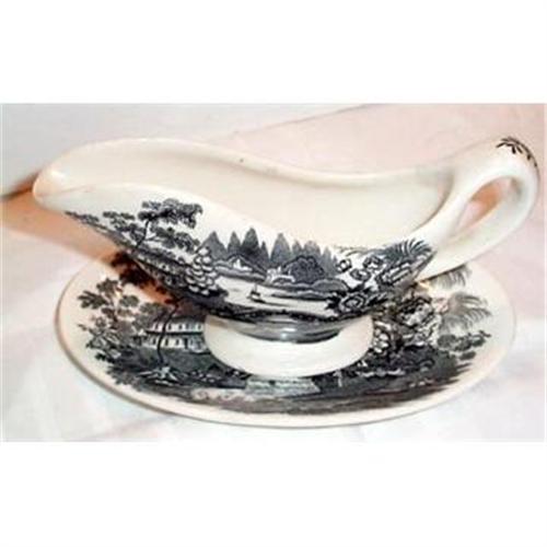 <tr><td>Title:Tonquin Black Transferware Sauce Boat and</td></tr>