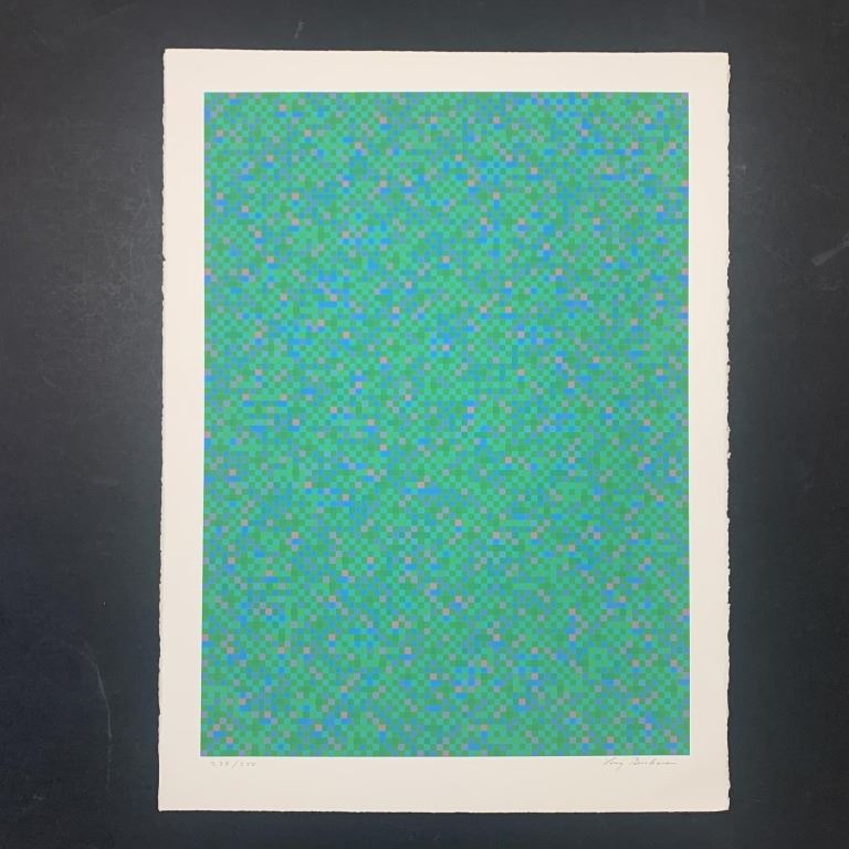Tony Bechara's "Onion" limited edition print, signed lower right, and numered 239/250 lower left. Done in Bechara's known geometric style, this piece is in great condition with a miniscule wrinkle lower right.