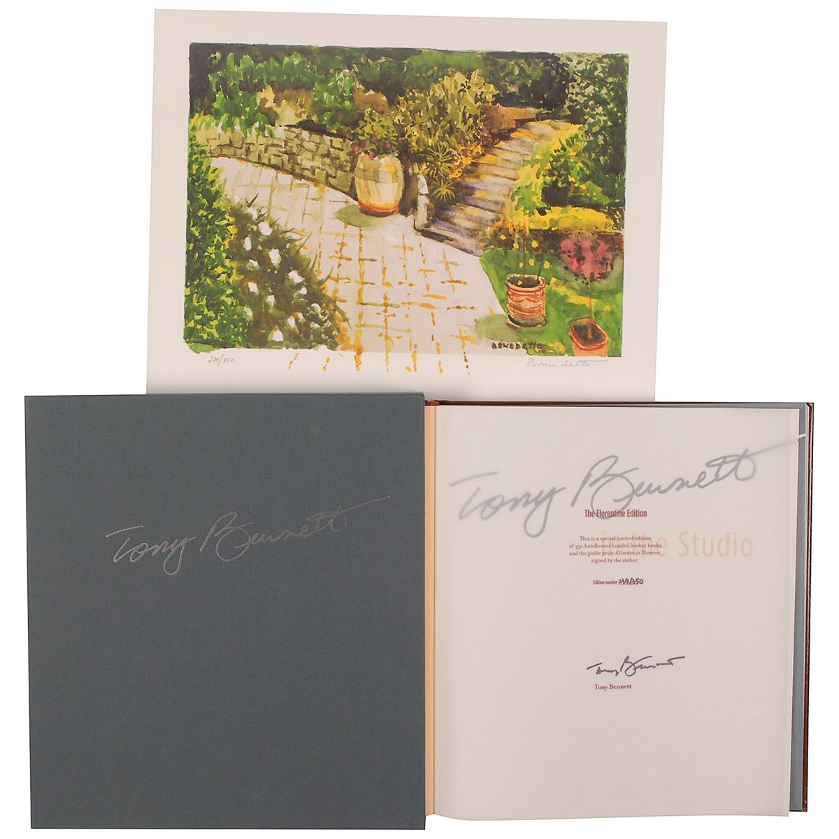 Signed book: Tony Bennett in the Studio. Limited edition Florentine edition of 350 copies (This being No. 234). NY: Sterling, 2007. Hardcover with dustjacket, 10.5 x 11.5, 212 pages. Signed on the limitations page in black felt tip. In fine condition, with some scattered light marks to slipcase. Accompanied by its original box and giclee print, which is also signed by Bennett, “Benedetto.”