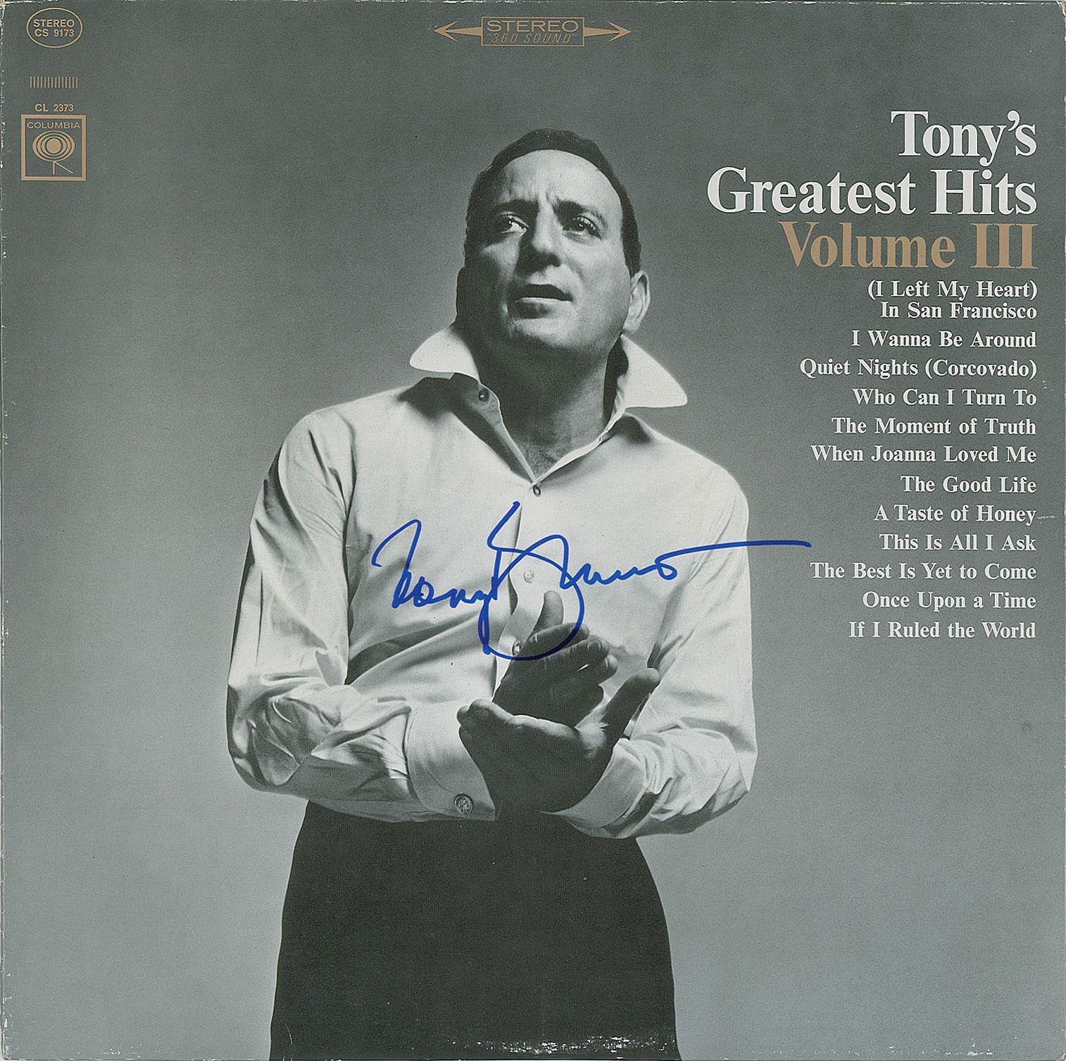 Tony's Greatest Hits: Volume III album signed neatly on the front cover in blue felt tip by Bennett. In fine condition. The record is included.