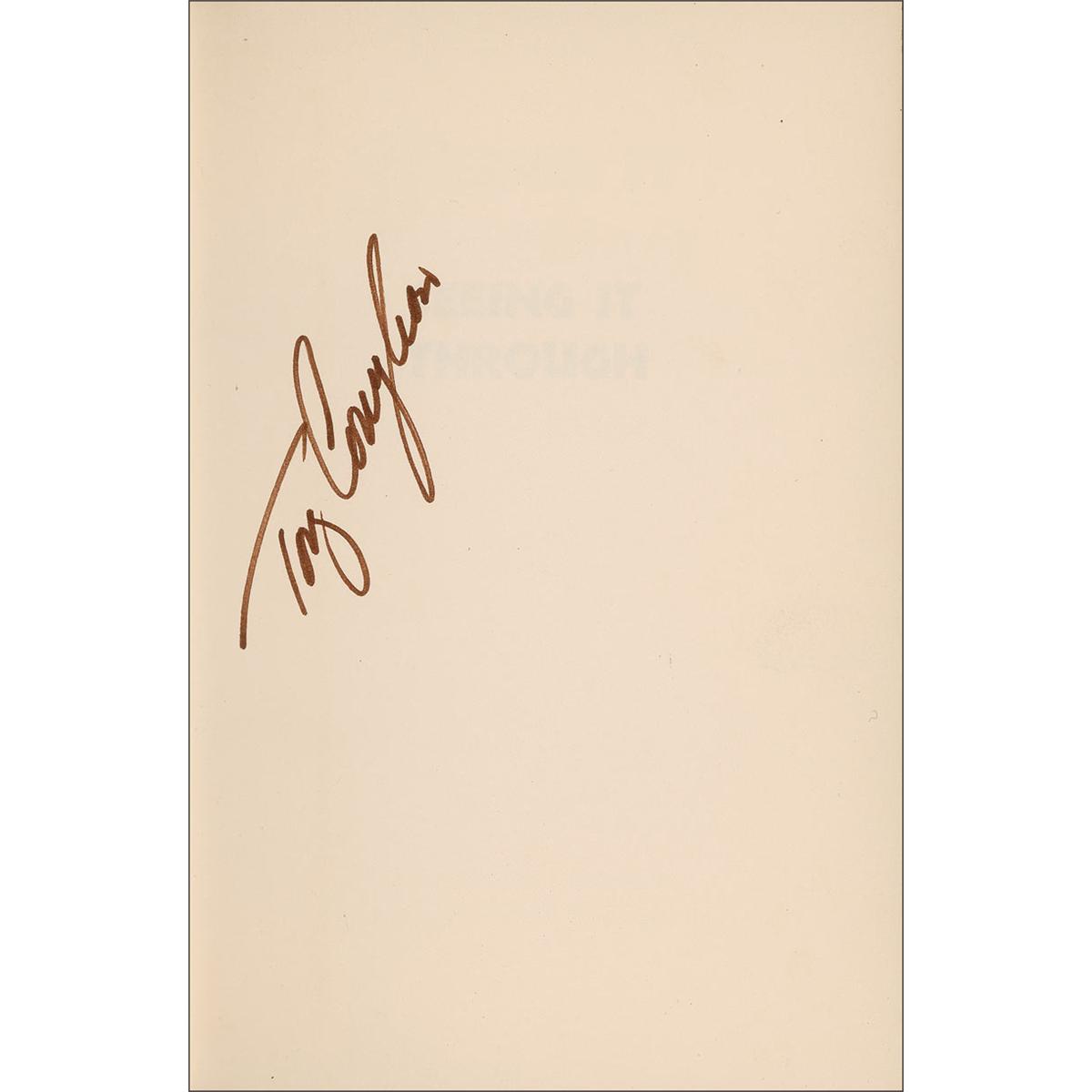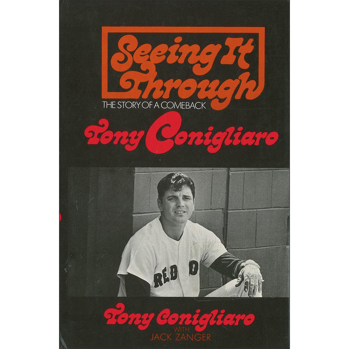 Gifted player (1945–1990) with the Boston Red Sox until he was hit in the face with a fastball by Jack Hamilton. Tony returned to the lineup a year and a half later, hit another 20 home runs, had 36 the year after, but was forced to retire due to his eyesight being permanently damaged. Signed book: Seeing It Through. First printing. NY: The Macmillan Company, 1970. Hardcover with dustjacket, 5.75 x 8.5, 238 pages. Signed in brown felt tip, “Tony Conigliaro,” on the first free end page. In fine condition, with scattered soiling to the top of the fore-edge pages and several scratches to the front of the dustjacket.