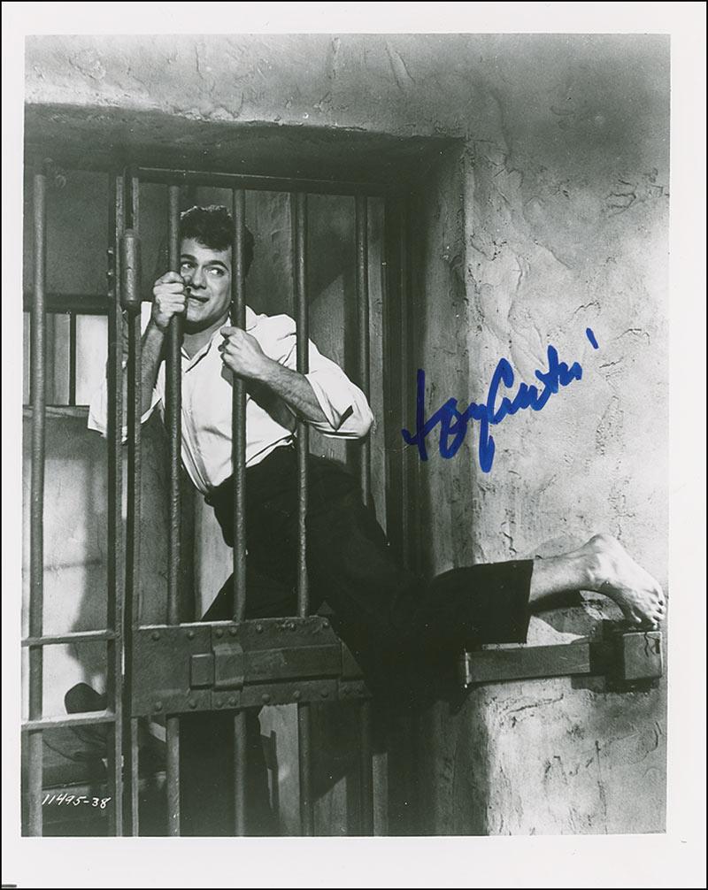 Glossy 8 x 10 photo of the actor as Houdini, signed in blue felt tip. In very fine condition.