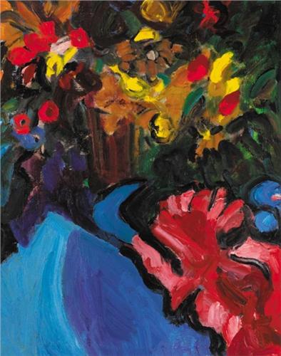 STILL LIFE WITH FLOWERS signed on reverse oil on canvas <BR>61 by 51cm., 24 by 20in.