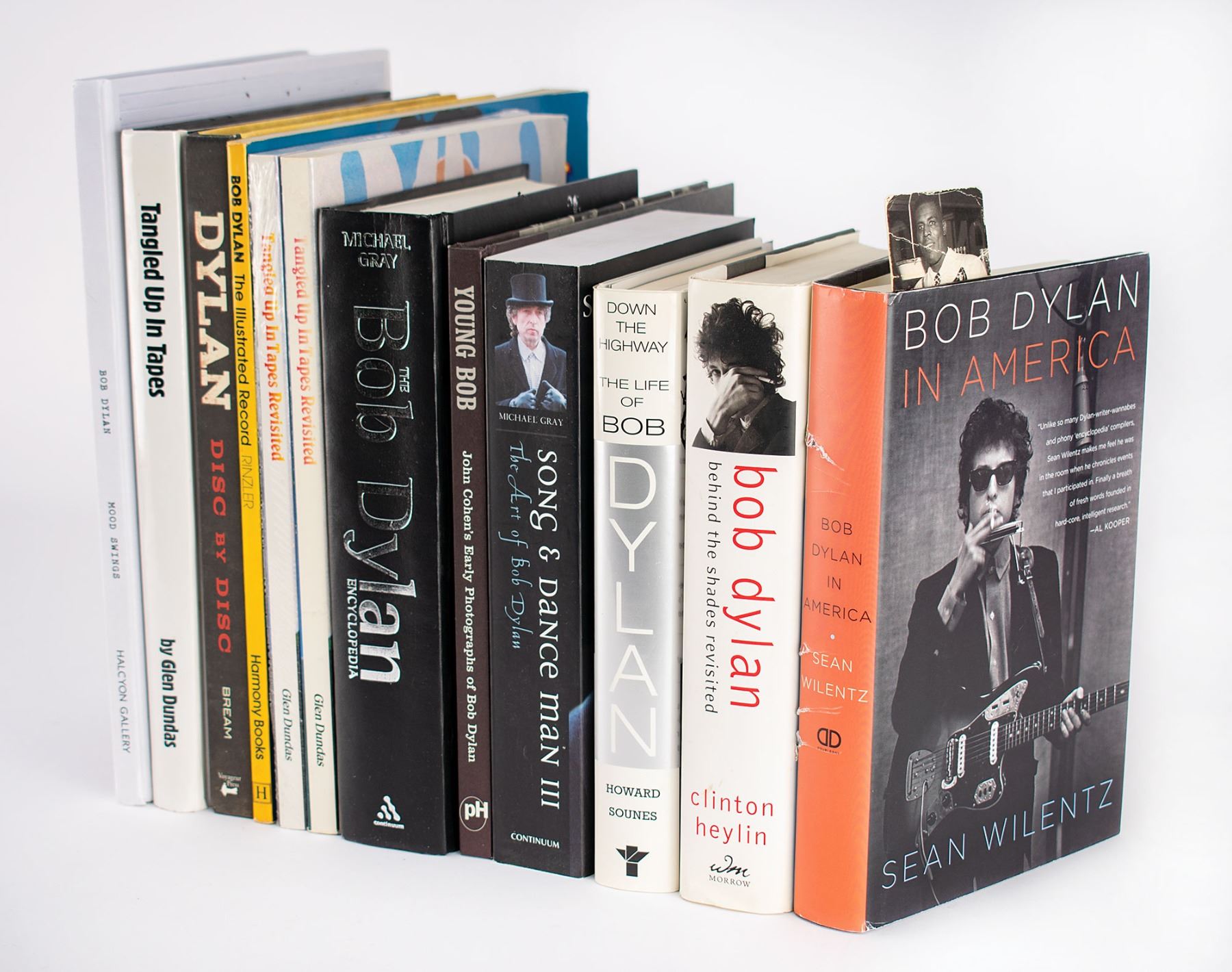 Collection of twelve Bob Dylan books from the personal library of Tony Glover, many signed by the authors or with transmittal letters. Includes: