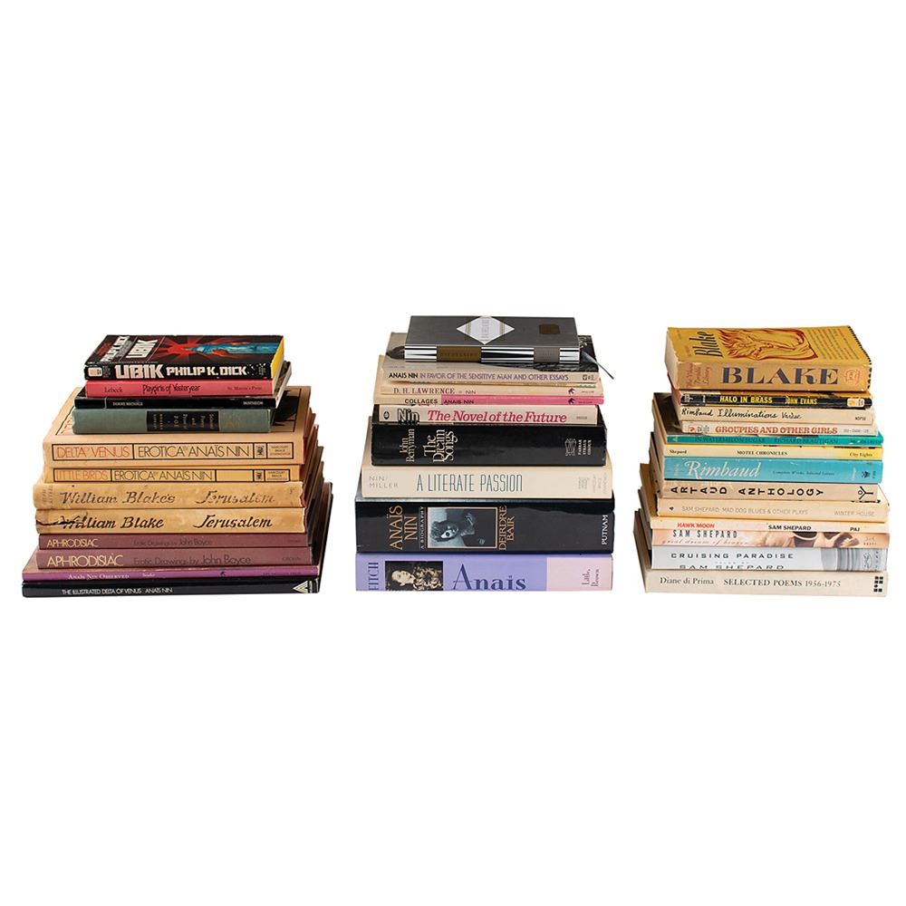 Collection of 35 books from the personal archives of Tony Glover, which is highlighted by a total of 14 works by or inspired by writer and diarist Anais Nin. The balance of the collection, both hardcover and softcover, consists mostly of works by Sam Shepard (5) and a variety of notable poets. The titles, in alphabetical order, are as follows: