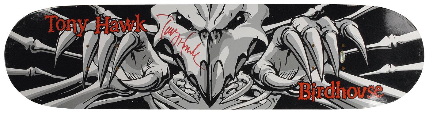 Visually stunning Tony Hawk Birdhouse Flying Falcon 3 skateboard (minus wheels), signed on the bottom in red felt tip by Hawk. In very fine condition, with a Steiner hologram affixed to board. Accompanied by a certificate of authenticity from Steiner.