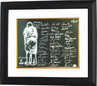 The New York Yankees are one of the AL's eight charter franchises. The club was founded in Baltimore, Maryland in 1901 as the Baltimore Orioles. The team moved to New York City in 1903 and became the New York Highlanders, before taking the "Yankees" as their official name in 1913. Yankees home games were played at Yankee Stadium from 1923 to 1973 and from 1976 to 2008. In 2009, they moved into a new ballpark also called Yankee Stadium after the previous venue closed. One of the most successful franchises in professional sports history, the Yankees have won 18 division titles, 40 AL pennants, and 27 World Series championships, all of which are MLB records. This 16x20 Photo has been hand signed by 48 New York Yankees players. Most famous players are: Tony Kubek, Charlie Hayes, Bobby Richardson, Bob Turley, John Wetteland, Jimmy Key, Hector Lopez, Jim Bouton, Larry McCall, Mariano Duncan and Otis Nixon. Certificate of Authenticity from Athlon Sports. Custom White Mat and Premium Black Color Framed as shown.