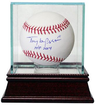 Tony La Russa, the legendary manager of the Chicago White Sox, Oakland Athletics and St. Louis Cardinals is one of only two managers in history to win a World Series in both leagues. He captured the 1989 World Series with the Oakland As and the 2006 Title with St. Louis. A 3-Time AL and 1-Time NL Manager of the Year La Russa is known for his out-of-the-box thinking in the dugout most notably batting his pitcher eight instead of ninth in the order. On December 9, 2013, he was unanimously elected to the Hall of Fame by the 16-member Veterans Committee. The induction ceremony will be held at Cooperstown, New York, on July 27, 2014. Tony La Russa has hand signed this Official Major League Baseball with HOF 14 inscription. MAB Hologram and Certificate of Authenticity from Athlon Sports. Glass Display Case shown IS included.