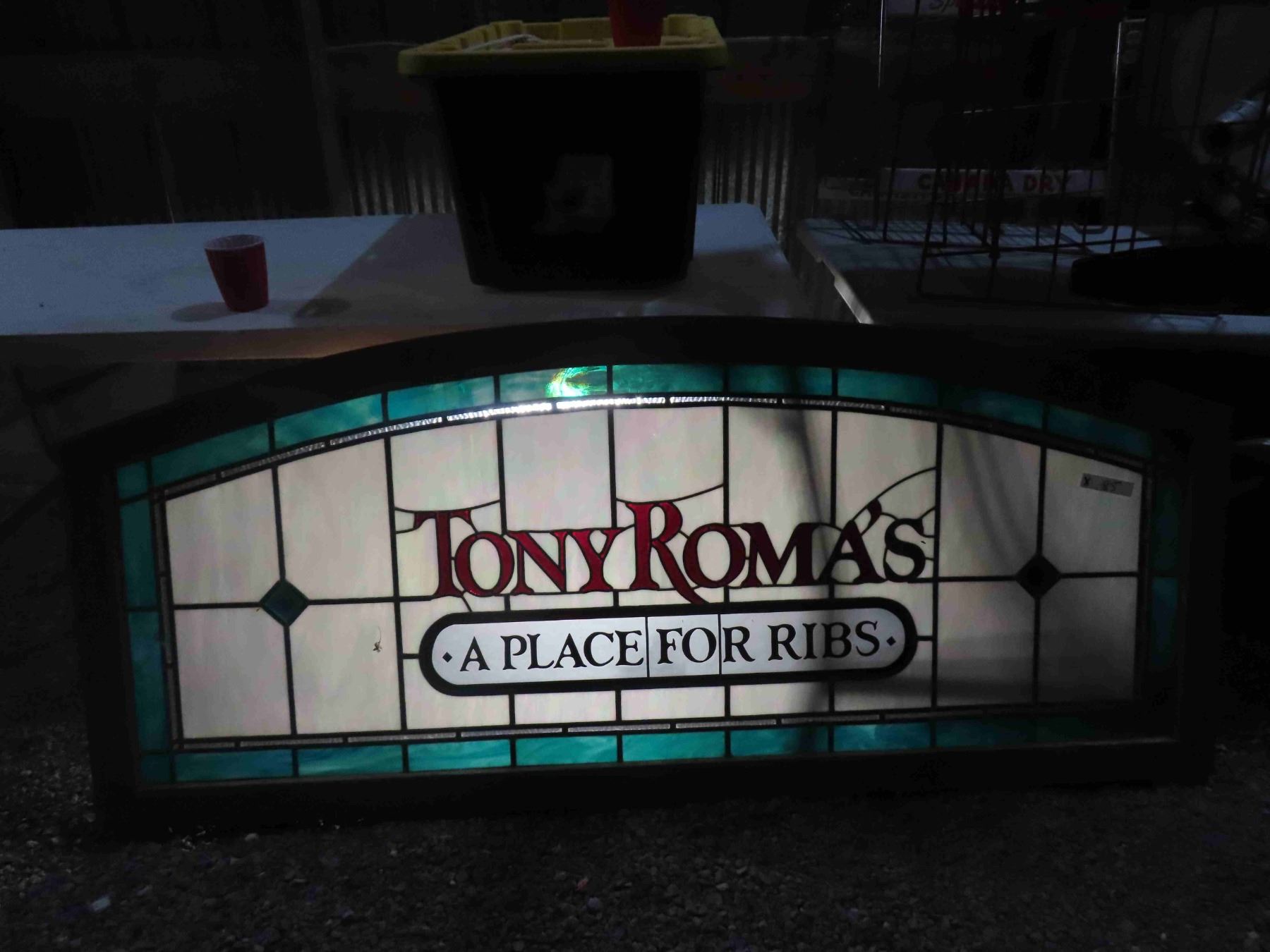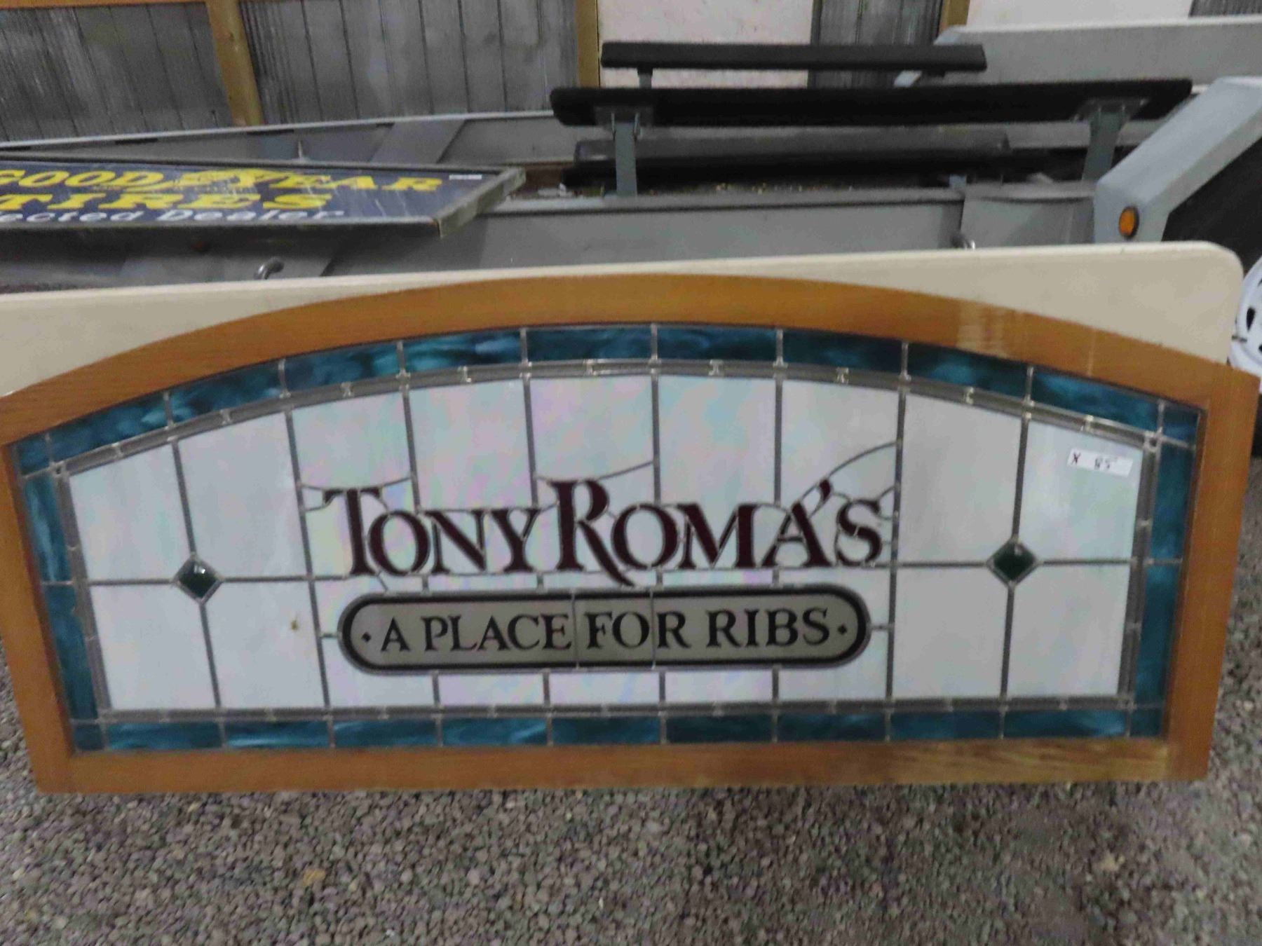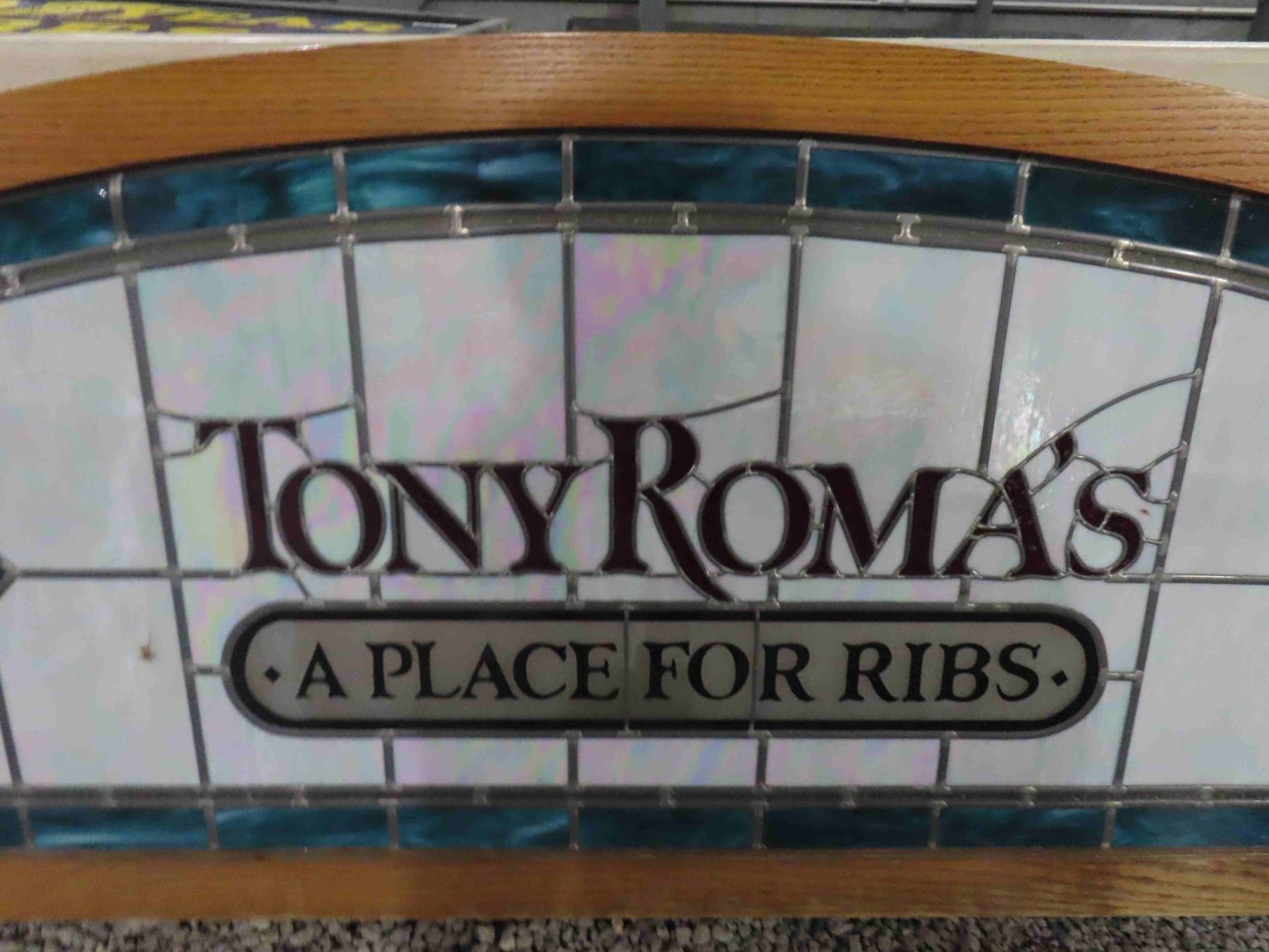 Tony Romas Stained Glass Oak Framed Restaurant Sign/Display 30'' x 72'' x 24'', Came From The Tony Romas on Pembina Highway Winnipeg MB! Super Neat