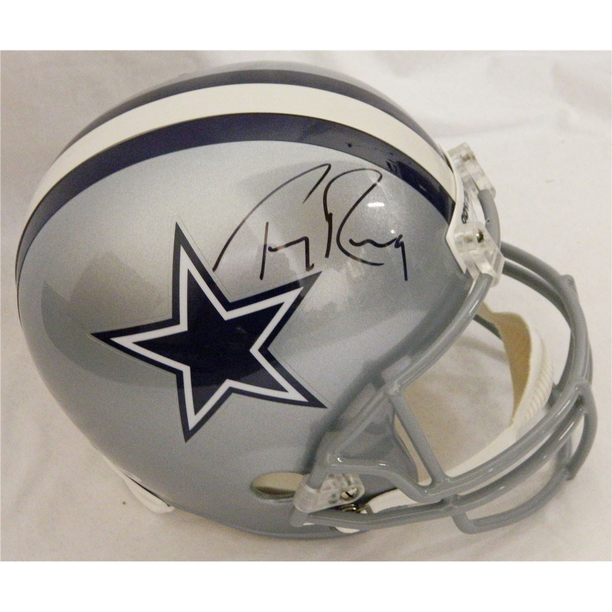 Tony Romo signed Dallas Cowboys Riddell full size replica helmet. Item comes with a Schwartz Sports Memorabilia tamper-proof numbered hologram and Certificate of Authenticity which can be verified online.