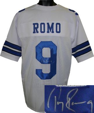 Tony Romo is the starting Quarterback for the Dallas Cowboys and has been elected to 3 Pro Bowls. He holds the Cowboys record for 300+ Passing yard games and is tied with Troy Aikman for throwing the most touchdowns (5) in a single game. He has thrown for over 15,000 yards and 100 touchdowns over his career. Romo finished the 2009 season as the first quarterback in team history to take every snap for a full season. Tony Romo has hand autographed this Dallas Cowboys White Prostyle Jersey. Certificate of Authenticity from Athlon Sports.