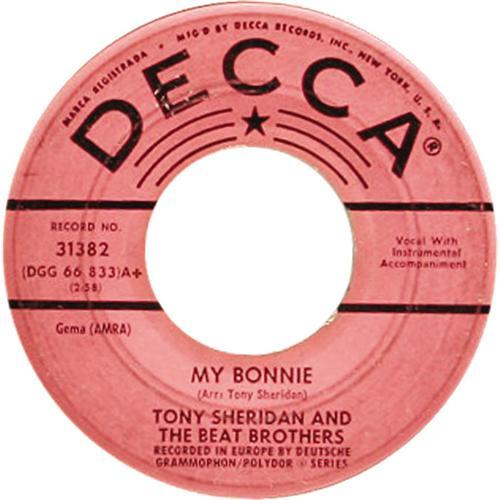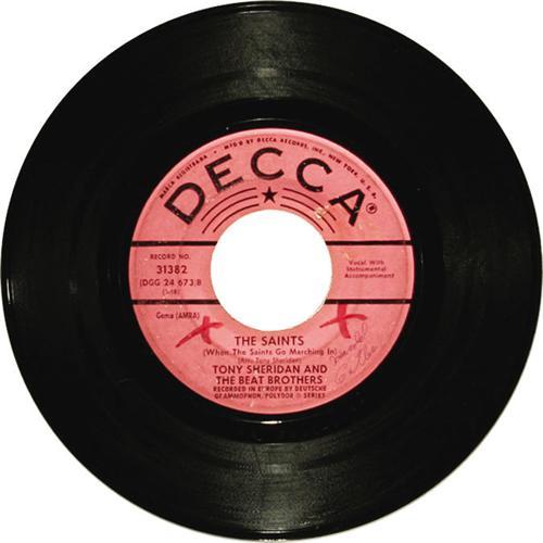 <B>Tony Sheridan and The Beat Brothers "My Bonnie"/"The Saints" Promo 45 (Decca 31382, 1962).</B></I> The Fab Four in the beginning! This rare promo copy was distributed in the U.S., but it didn't result in the Fab Four going anywhere -- that would come two years later! Condition: VG 5.<BR><BR><b>Shipping:</b> Recordings (<a target="_blank" href="http://www.heritageauctions.com/common/shipping.php">view shipping information</a>)