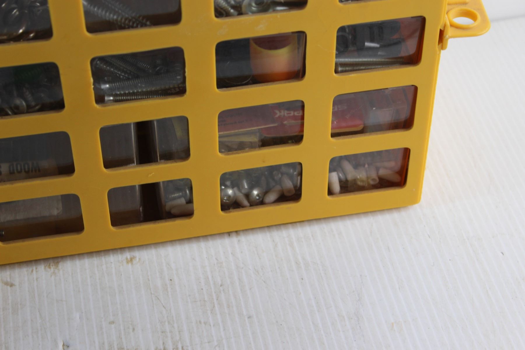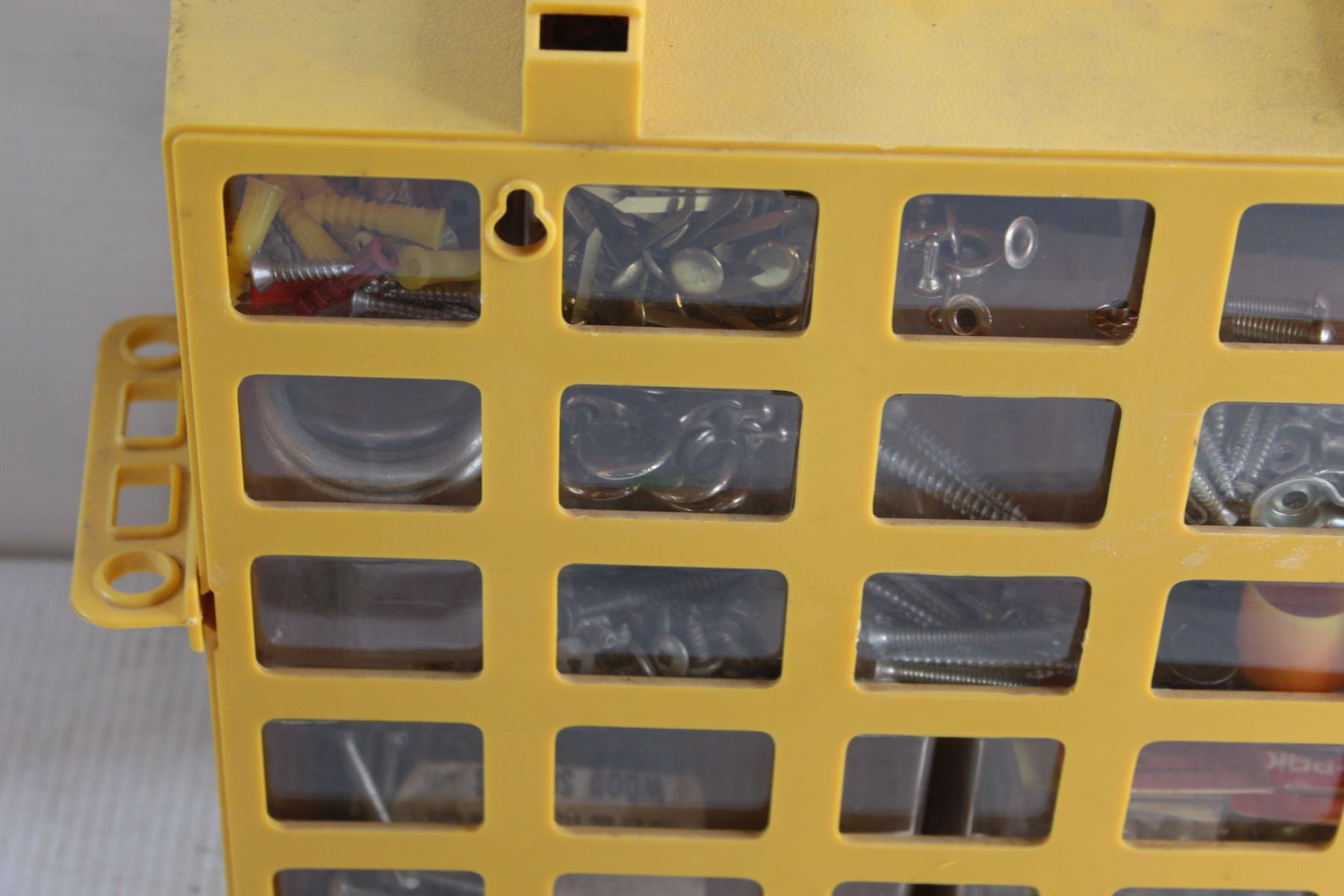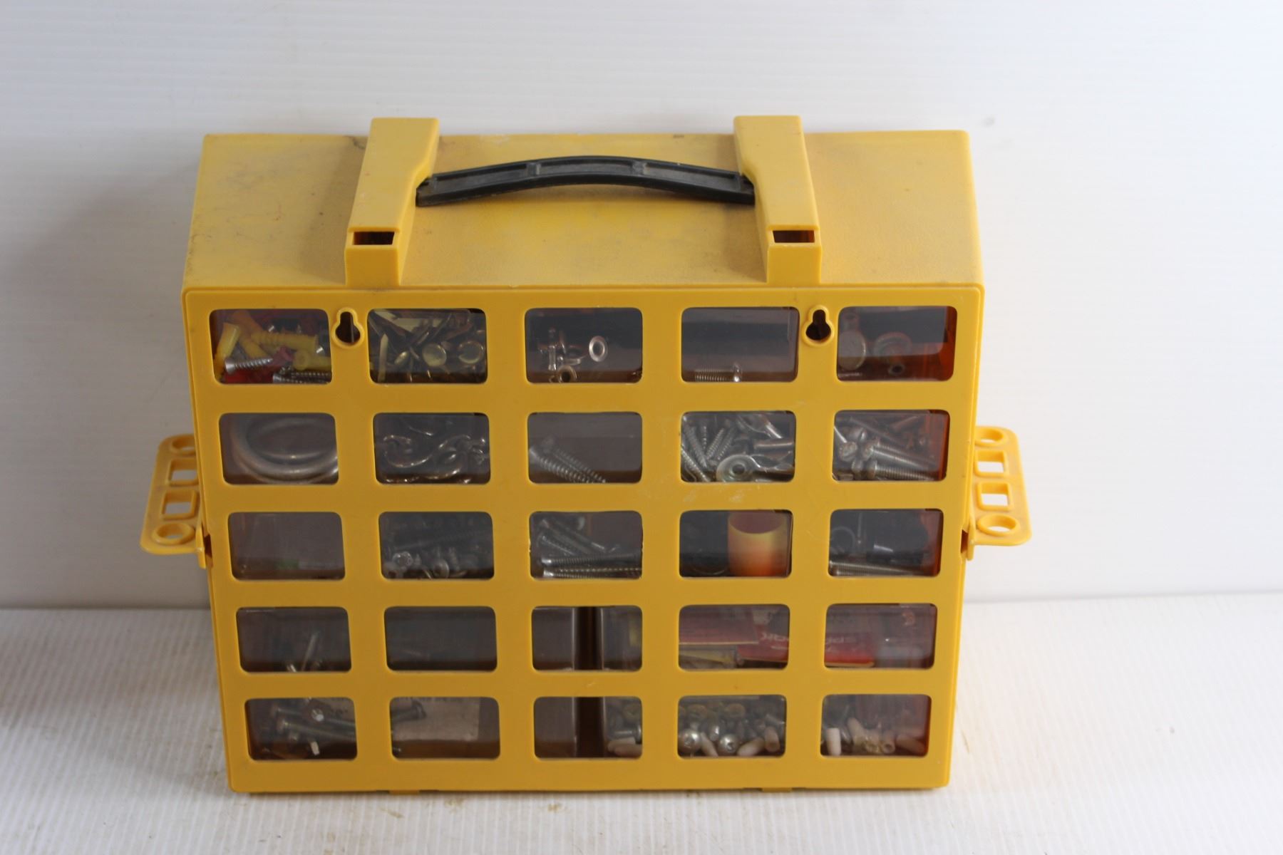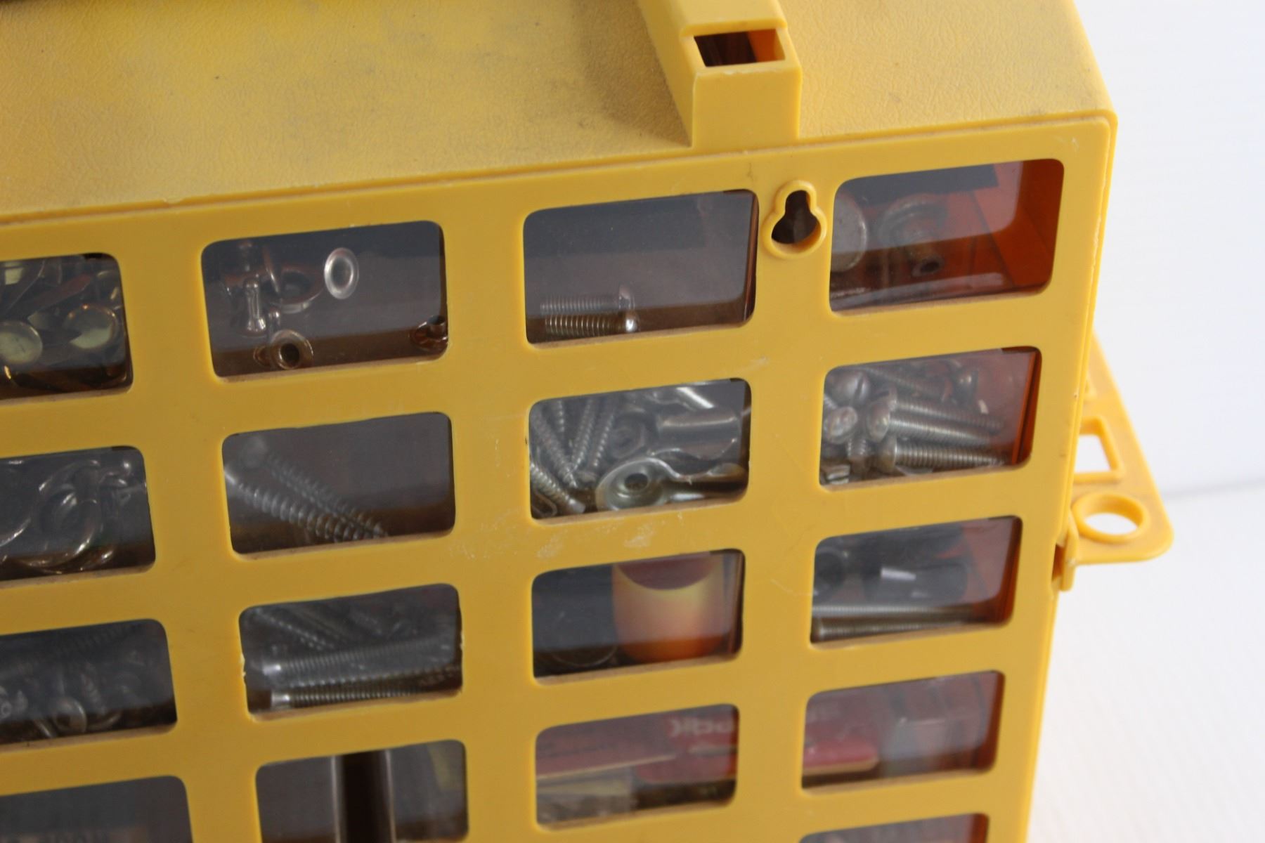 Tool Box Drawer with Assorted Hardware and Fire Extinguisher Wall Mount