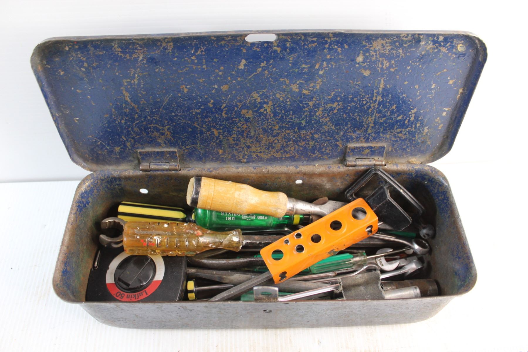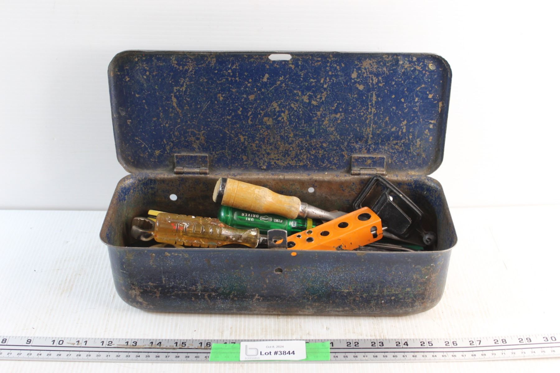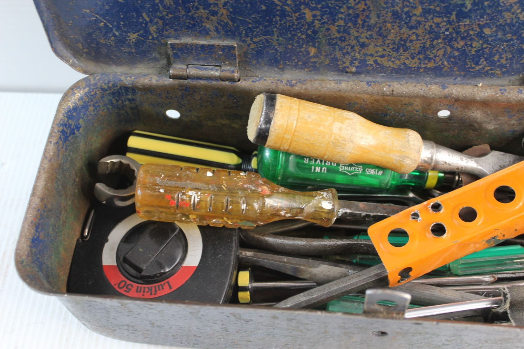 Tool Box with Assorted Tools - Screwdrivers, Wrenches & Measuring Tape