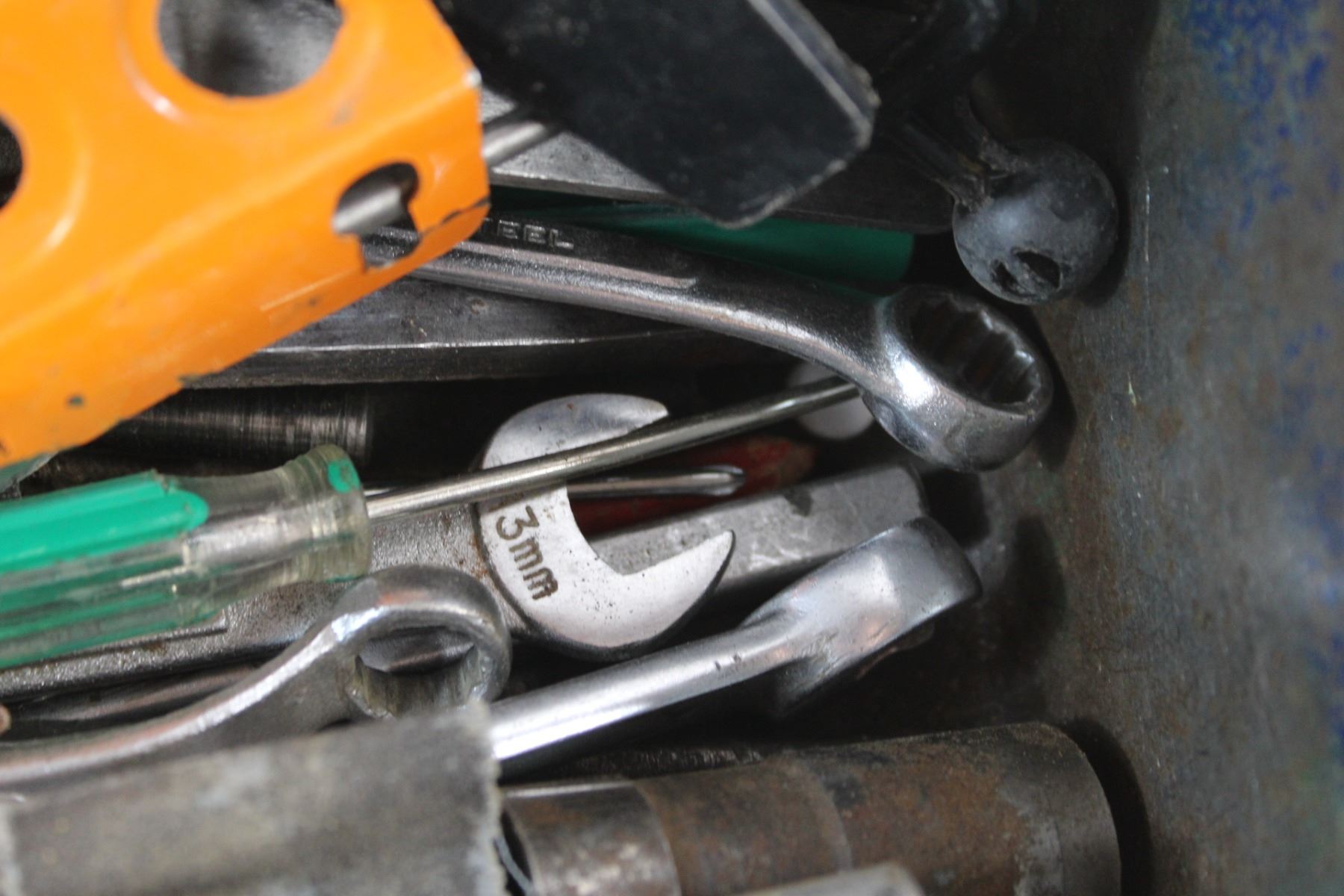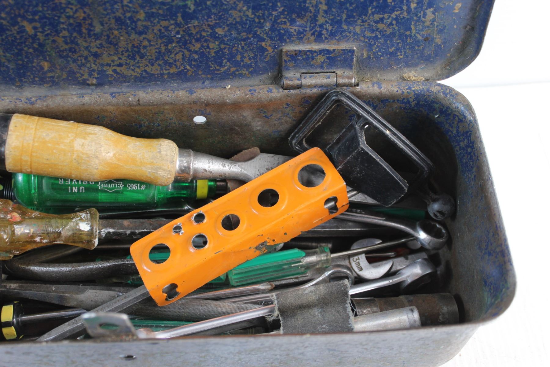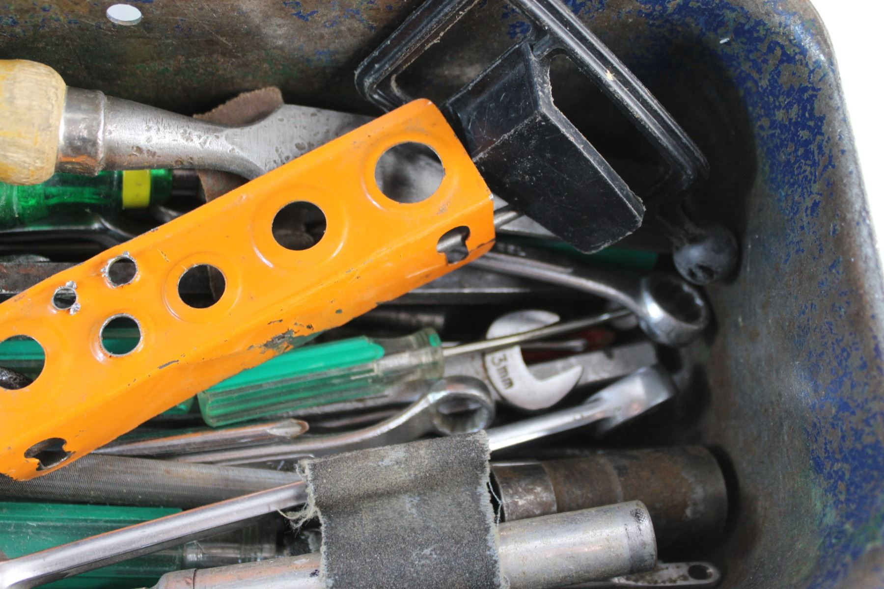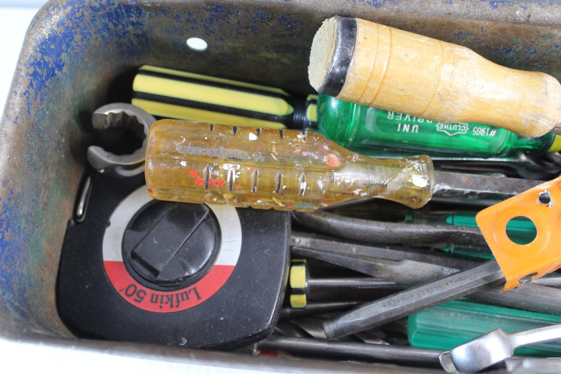 Tool Box with Assorted Tools - Screwdrivers, Wrenches & Measuring Tape