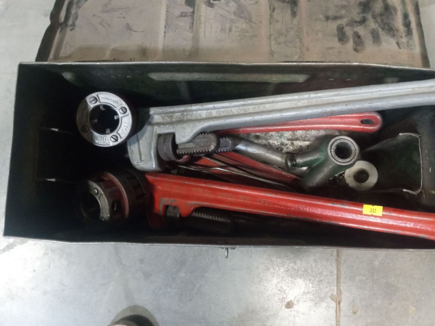 Tool Box with Pipe Wrenches and Pipe Bending Tools