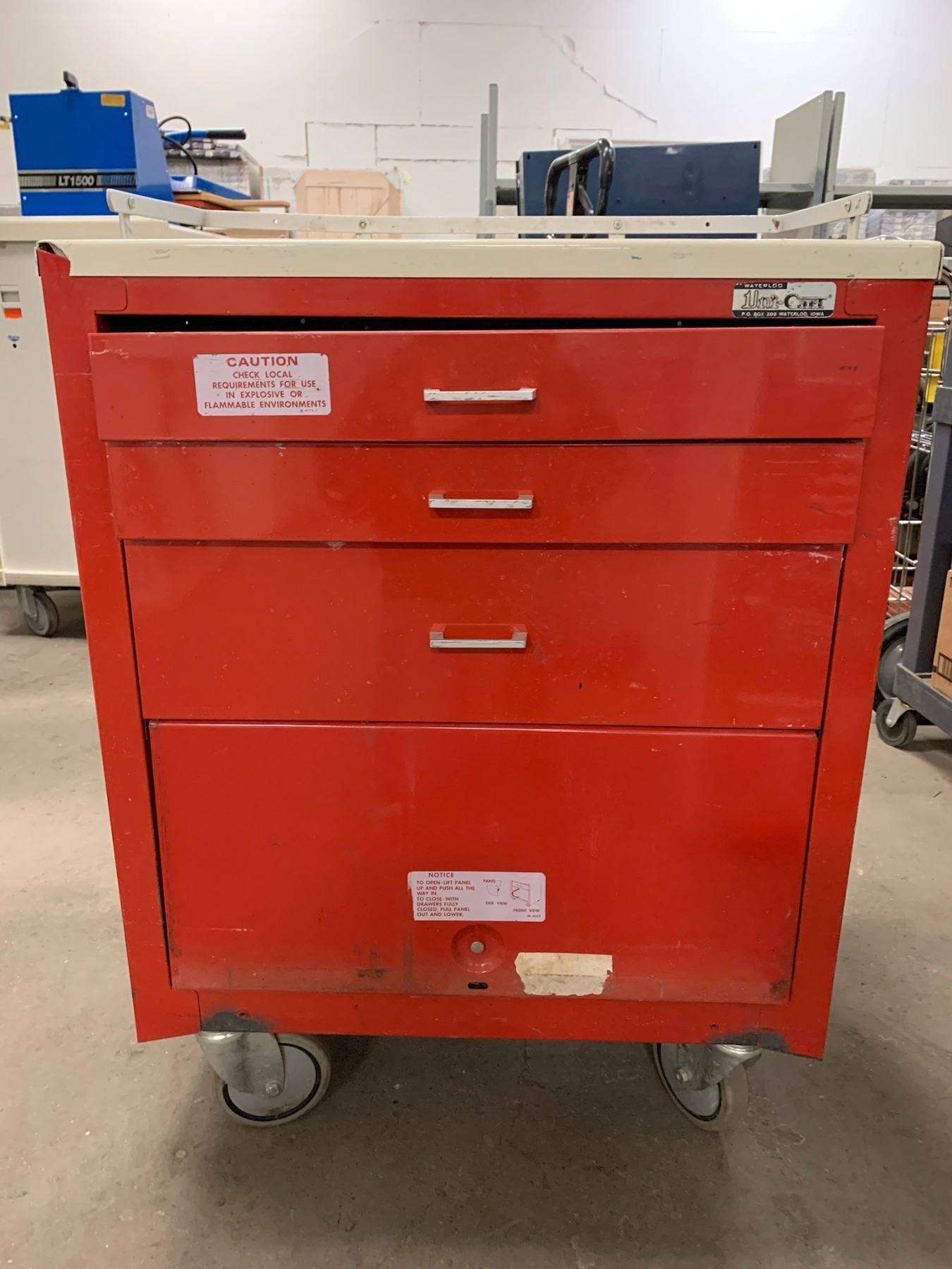 Tool Chest On Wheels, 3 drawers 1 door, 35"H 27"L 18"W...used