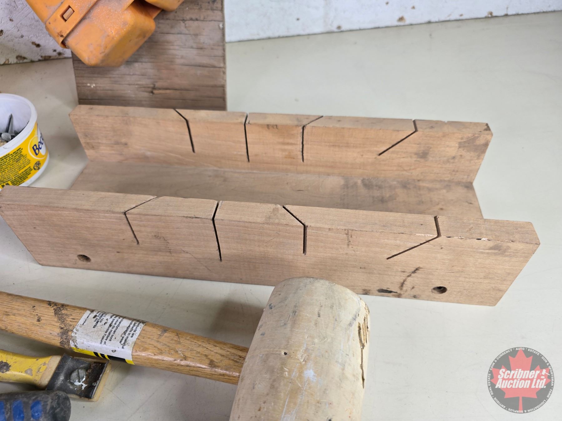 Tool Grouping/Combo: Amber Warning Light; Mitre Boxes; Shims; Rubber Mallet; Ball-peen Hammer