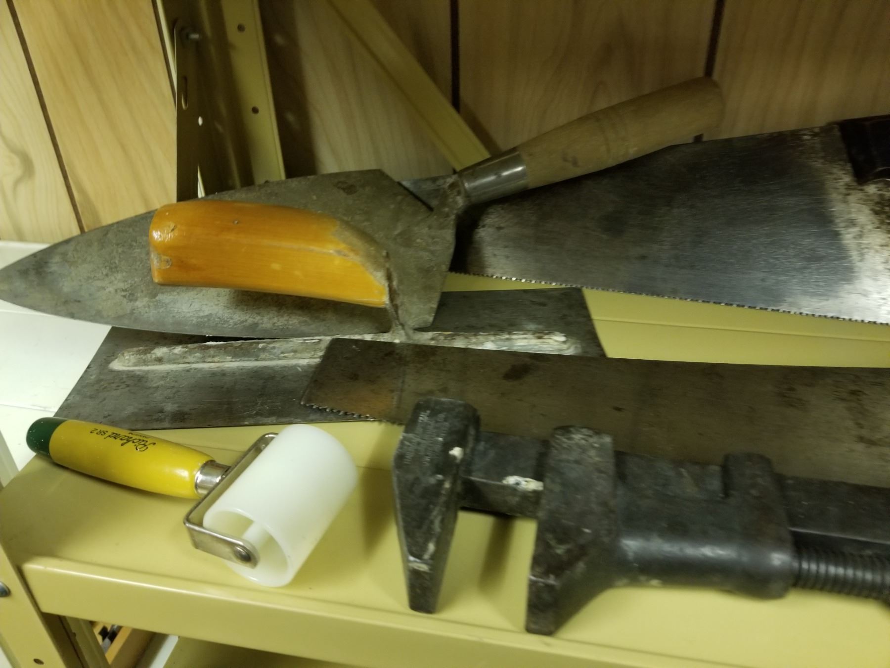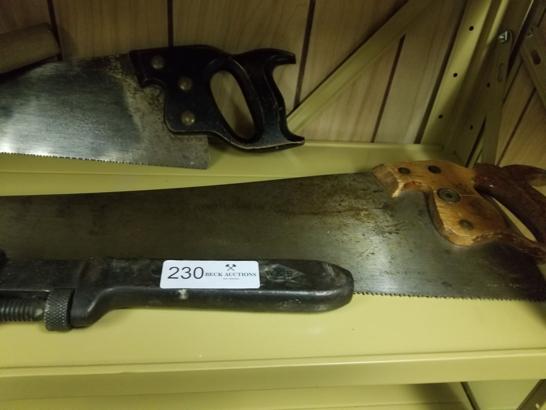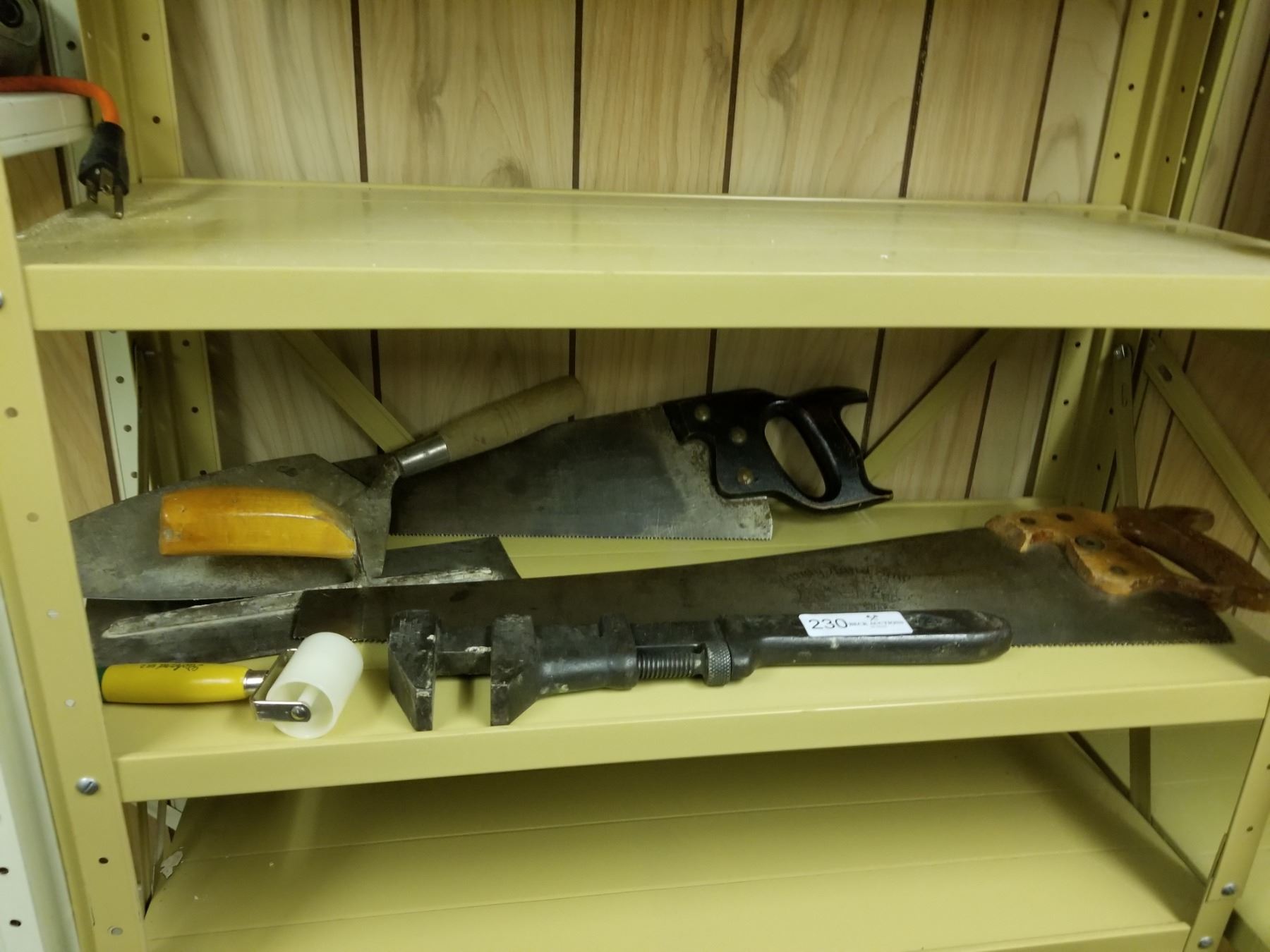 Tool Lot - 2 Saws 2 Trowels Piper Wrench