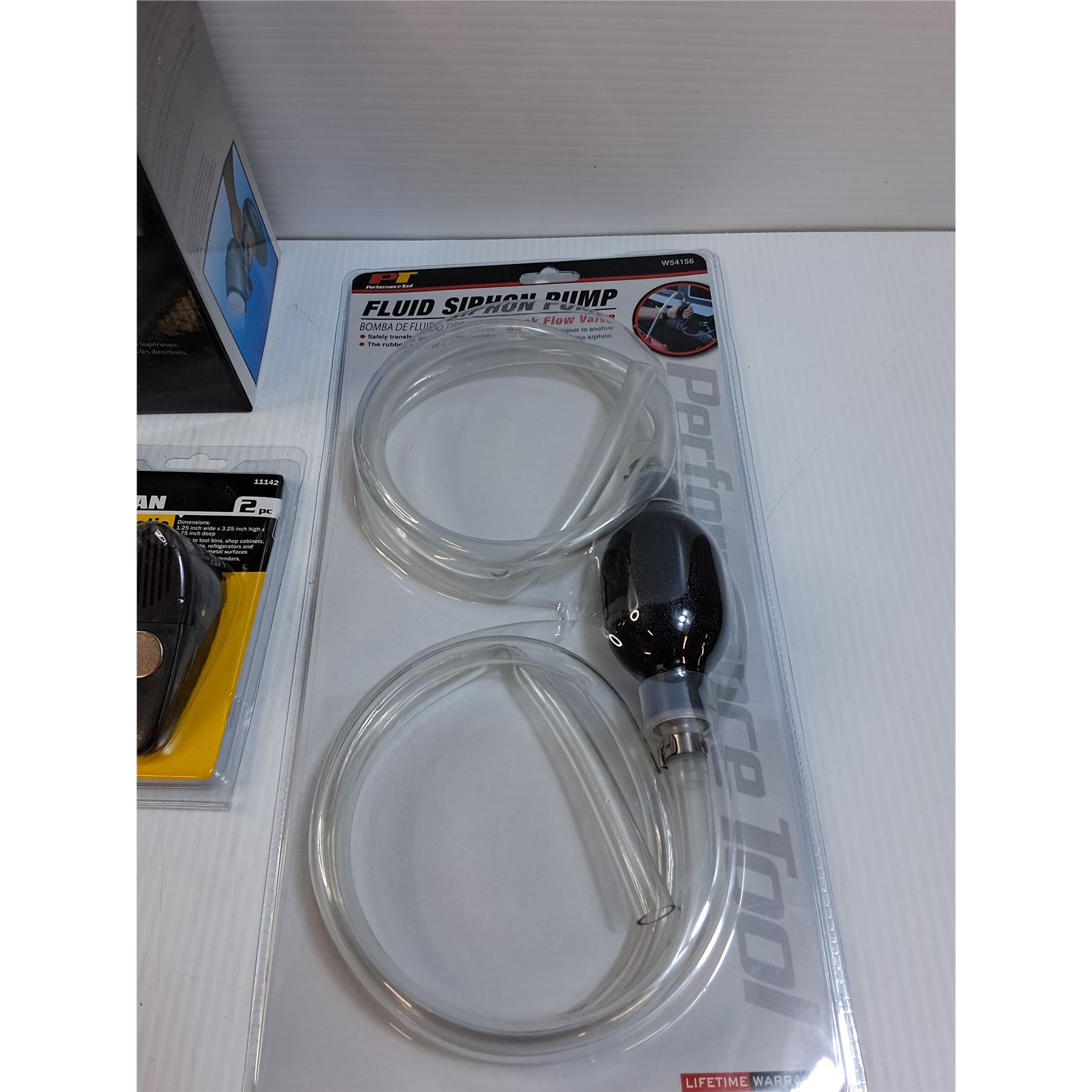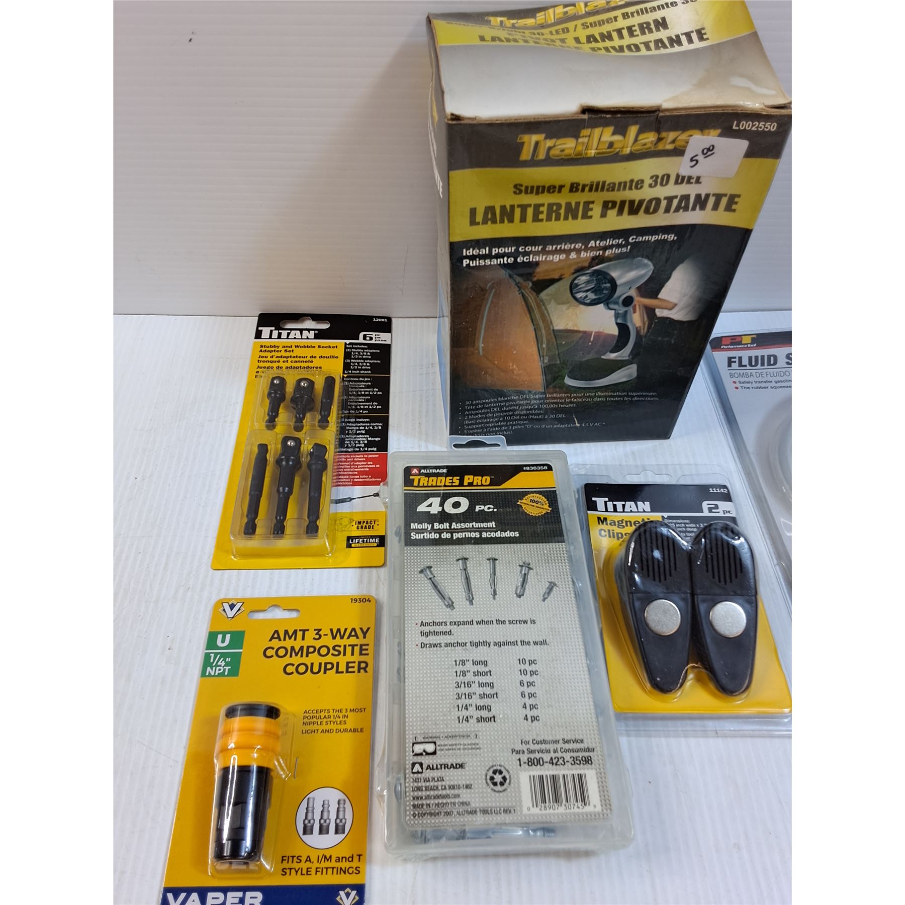 Tool Lot: Siphon Pump, Lantern Flashlight, Molly Bolt Kit, Misc
