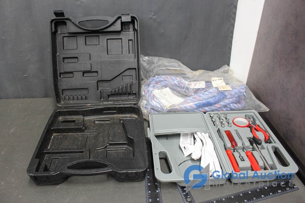 Tool Set in Case, Tow Rope and Empty Case