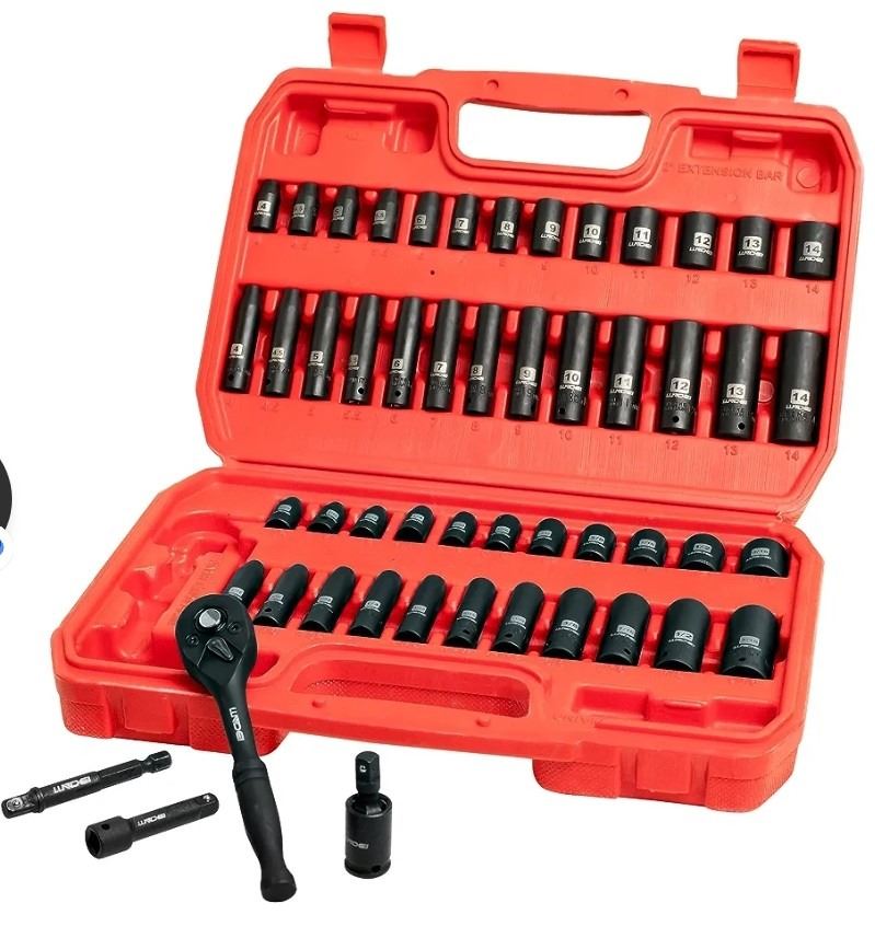LLNDEI 1/4”Drive Impact Socket Set, 52 PCS Mechanic Tool Set, 72-Tooth Ratchet & Adapter, CR-V, Metric and SAE Sockets, Brand New