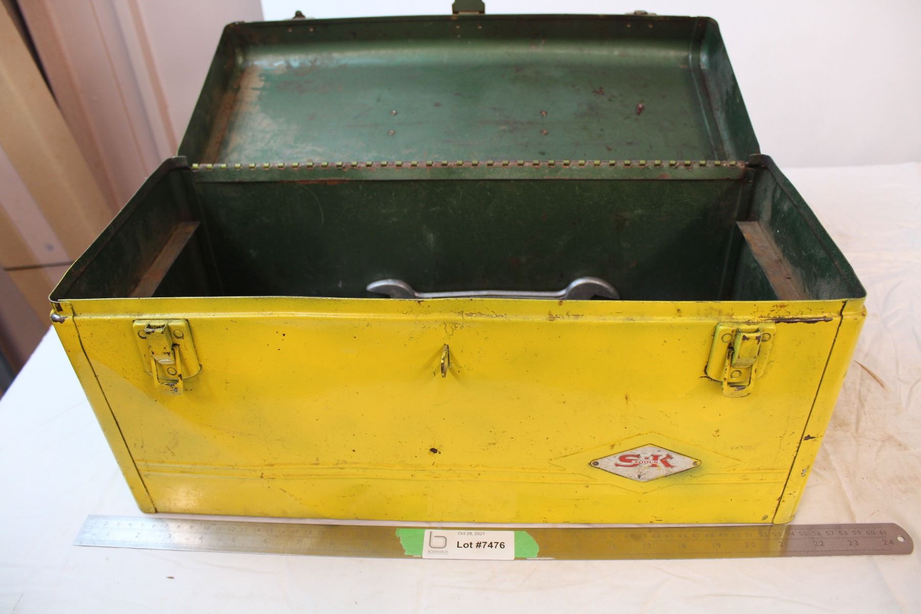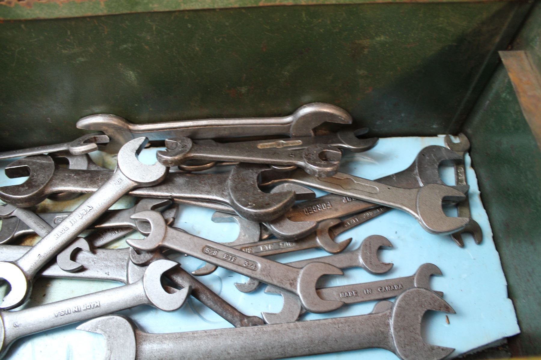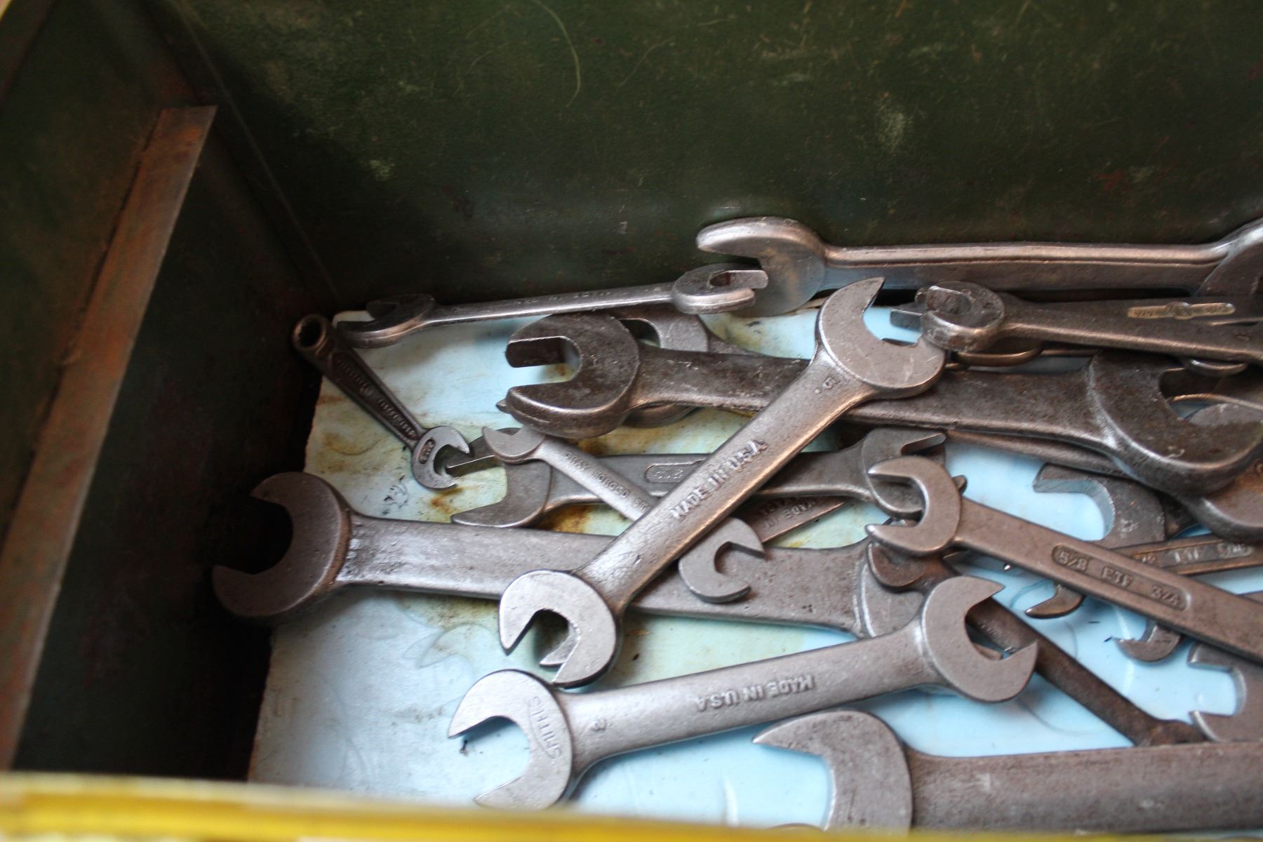 Tool box with vintage wrenches