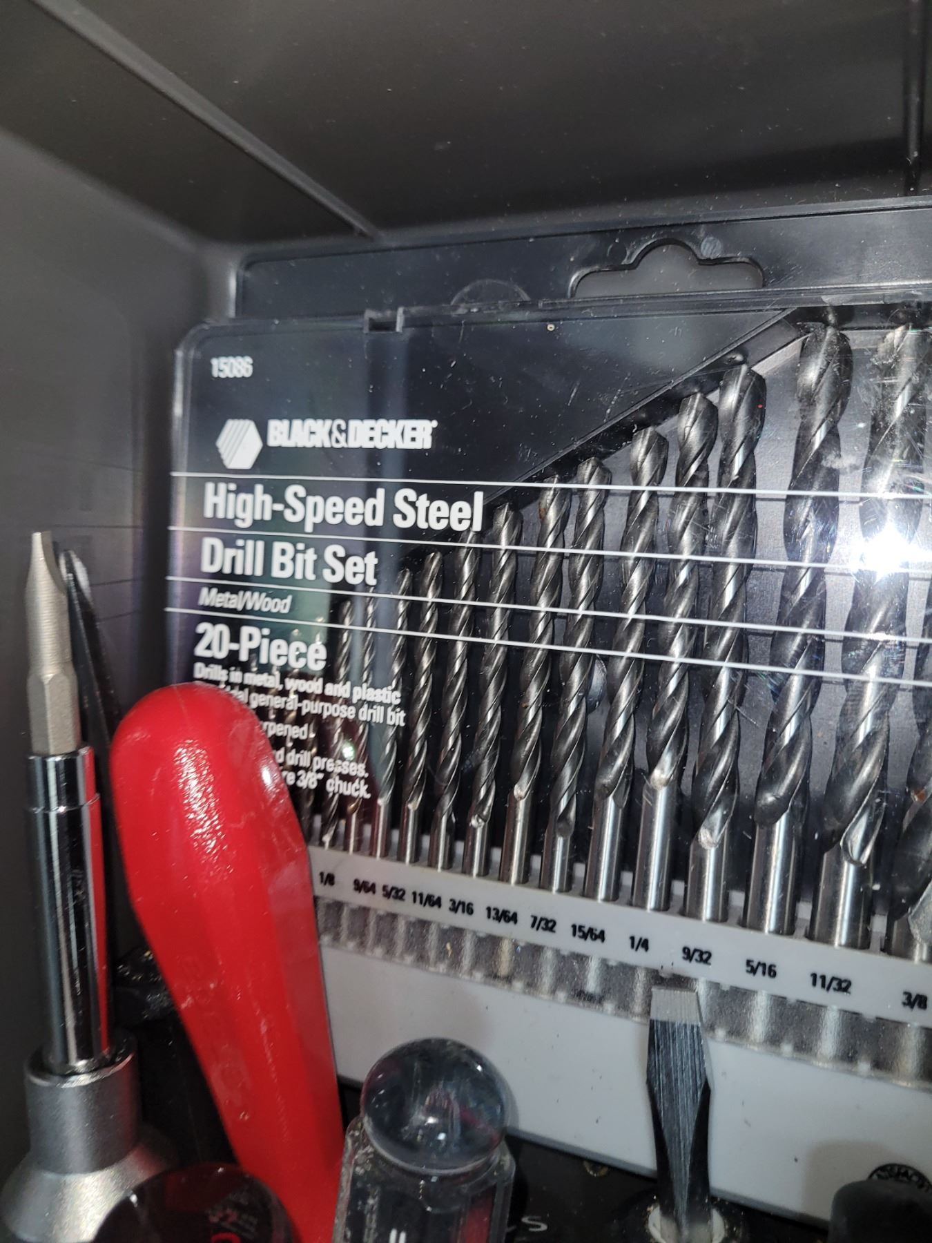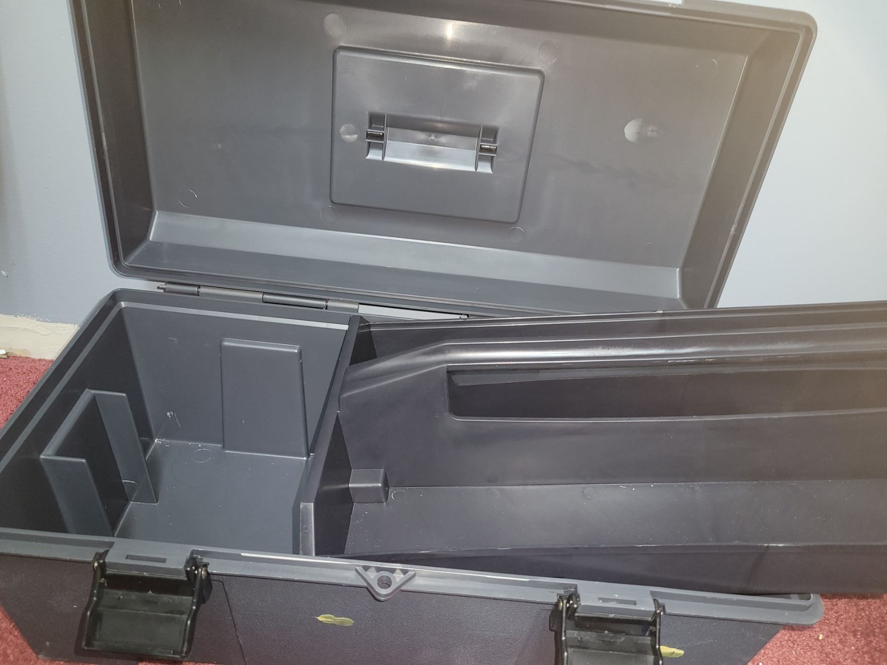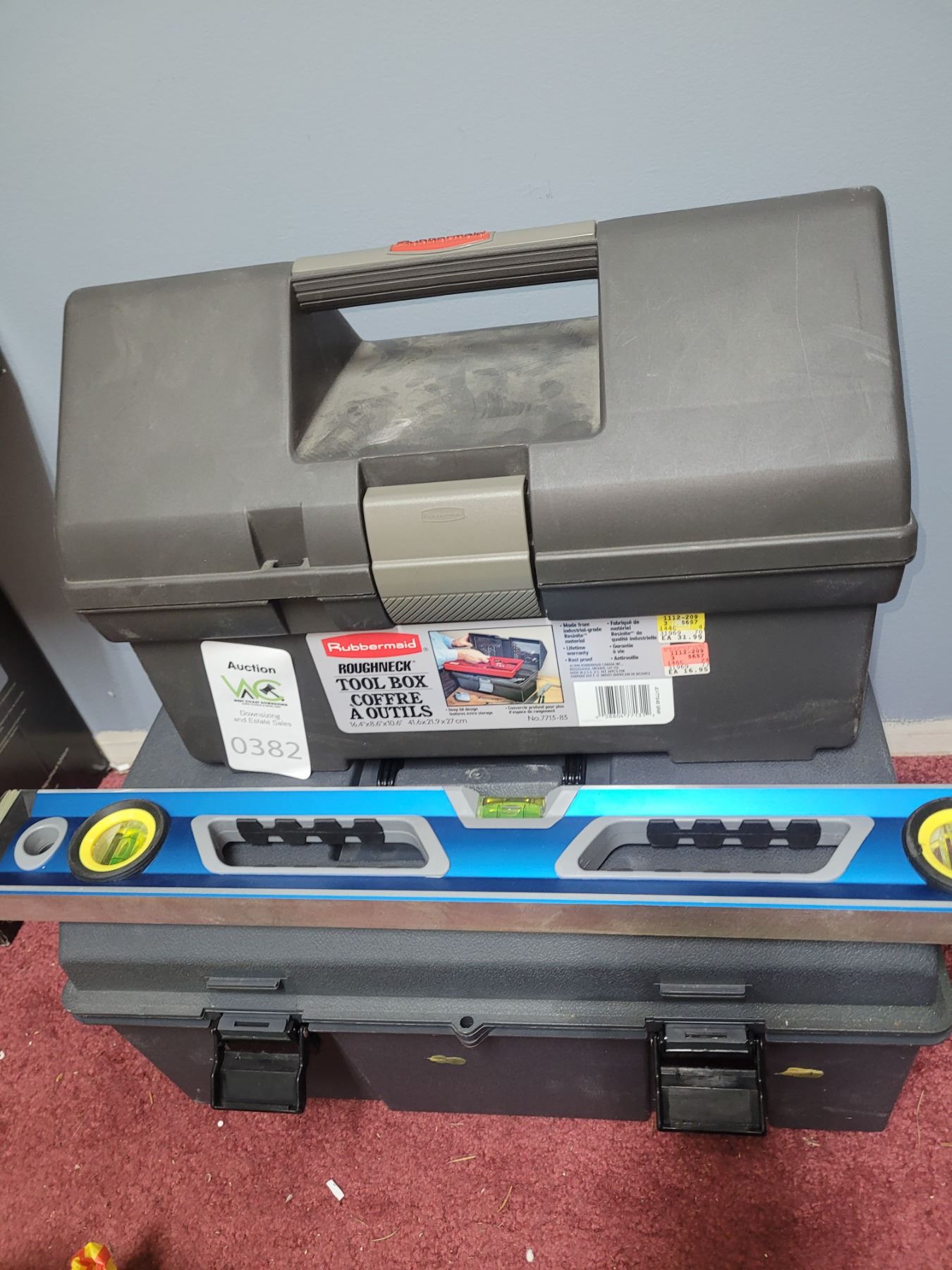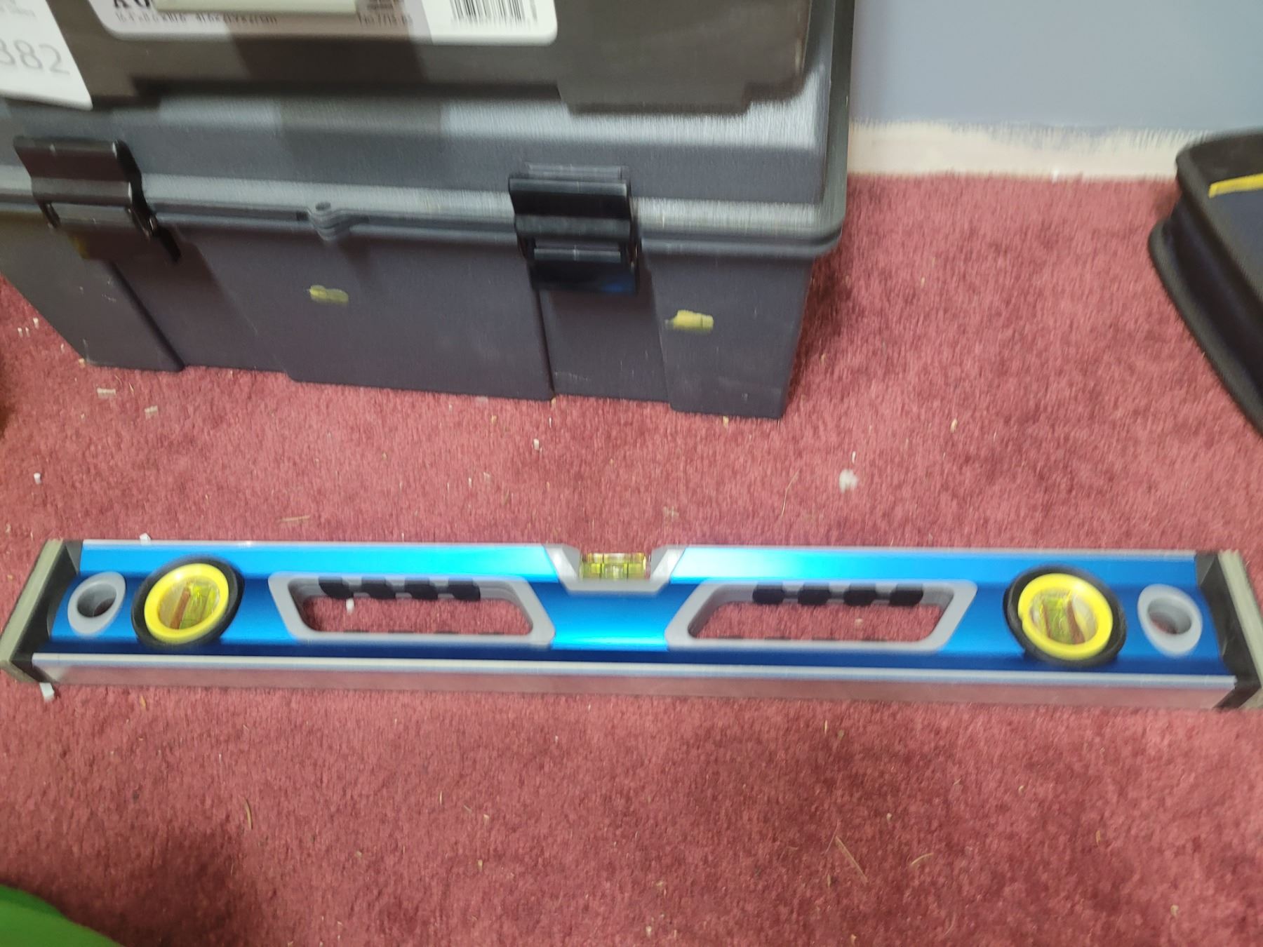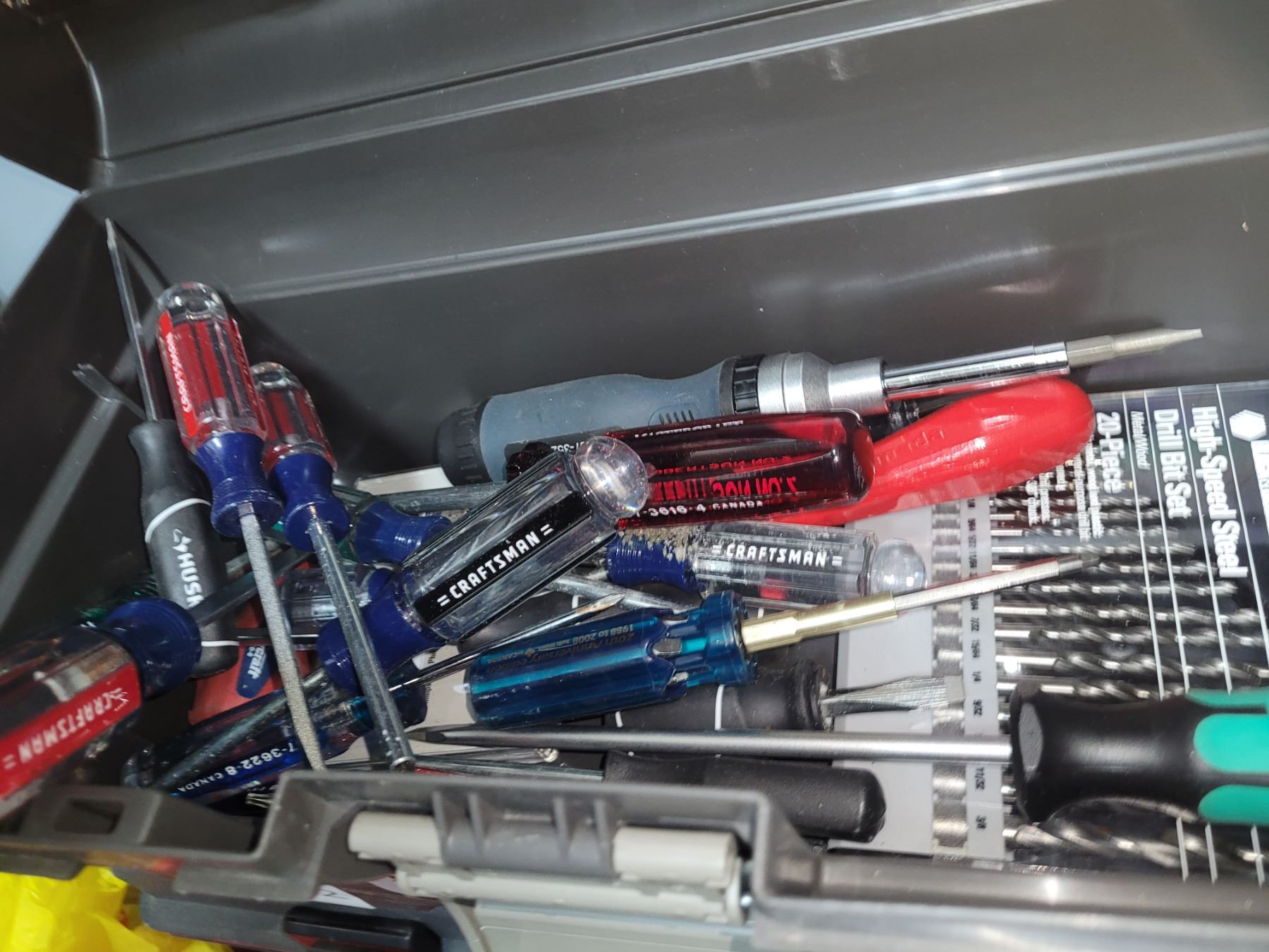Rubbermaid toolbox. Craftsman screwdrivers. Mastercraft level. Pick up 11am.