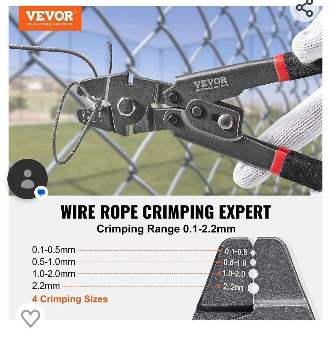 VEVOR Crimping Tool, Up To 2.2mm Wire Rope Crimping Tool, 3/64" - 1/8" Crimping Loop Sleeve Kit, Comes With Roll Of Wire, Aluminum Crimps, New Condition
