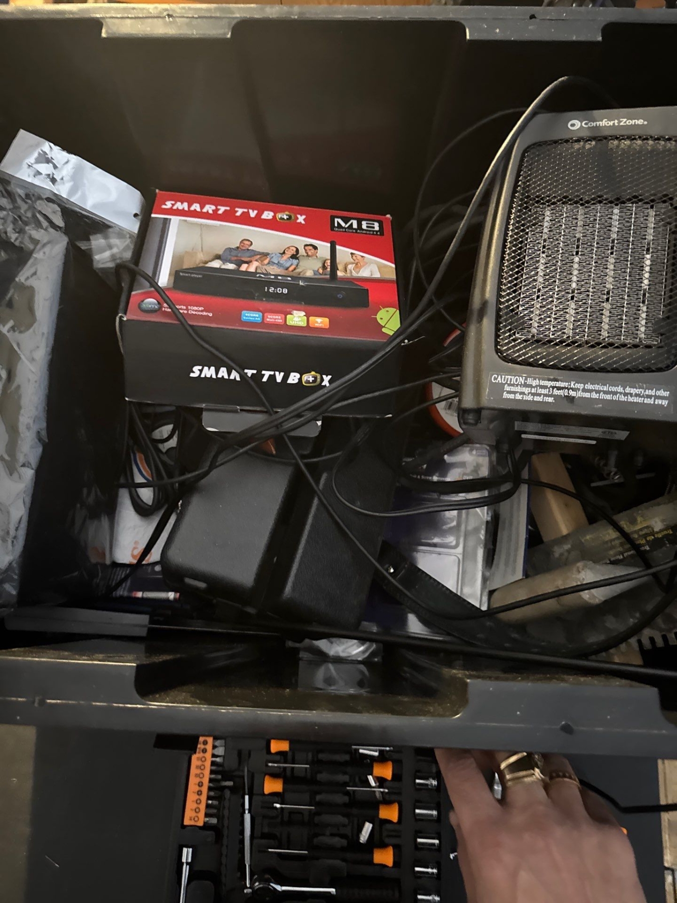 Toolbox full of tools space heater and more
