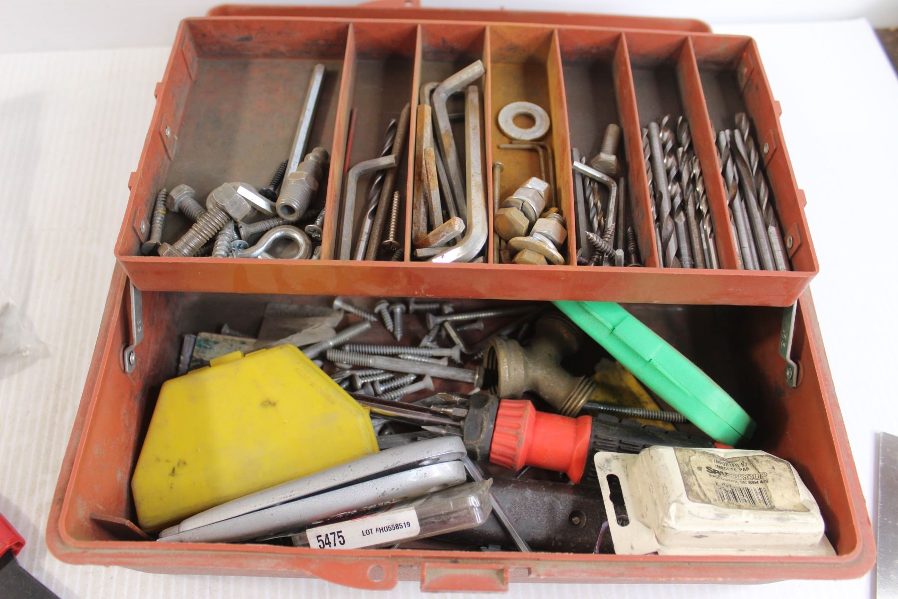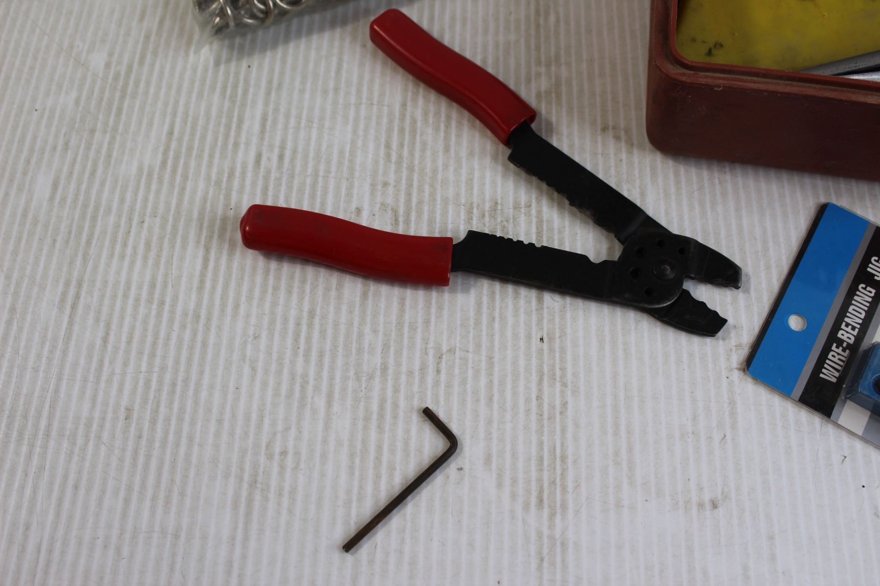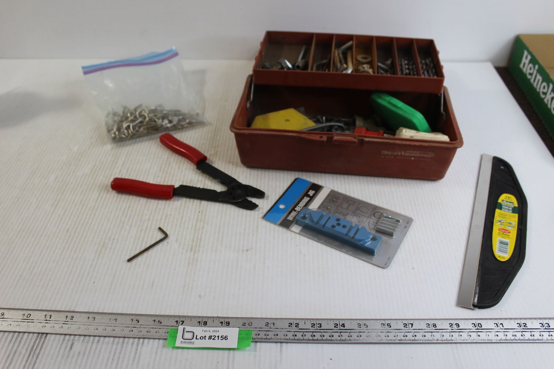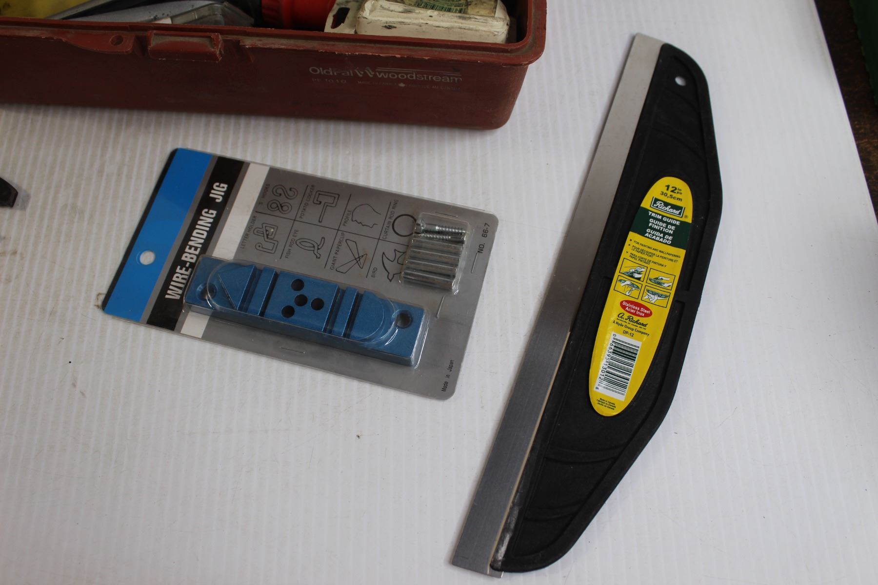 Toolbox with Contents, Hook Screws, Trim Guide, Misc.