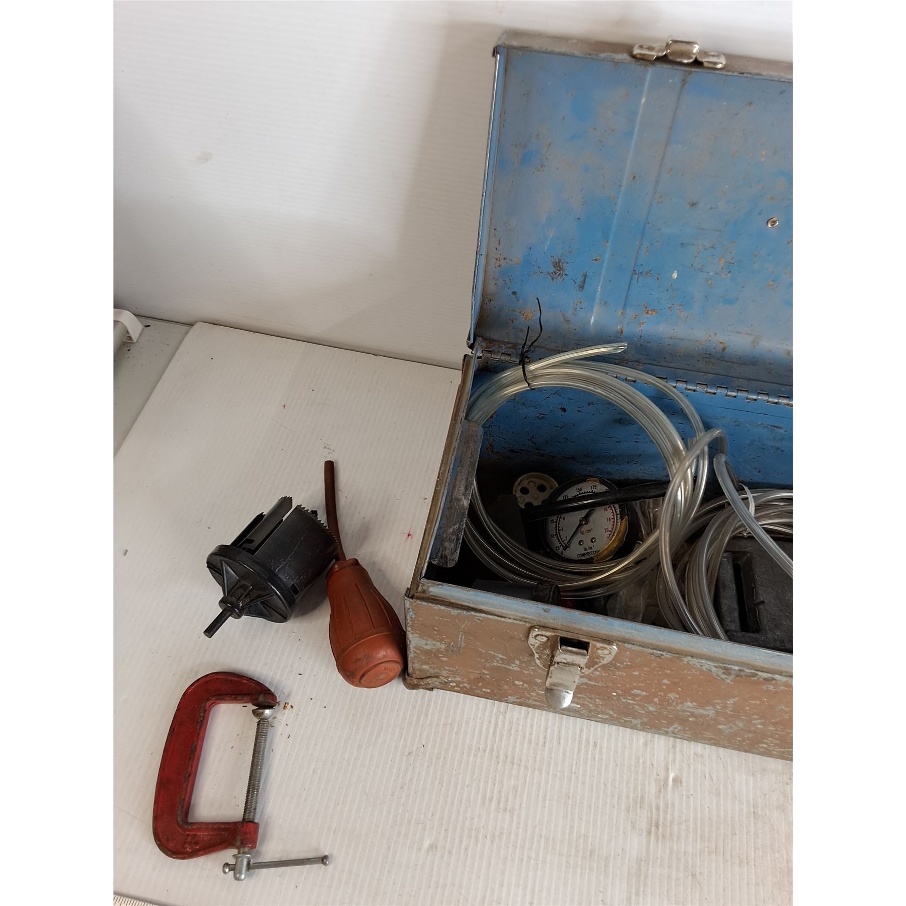 Toolbox with Misc Items;G-Clamp, Pressure Gauge, Etc