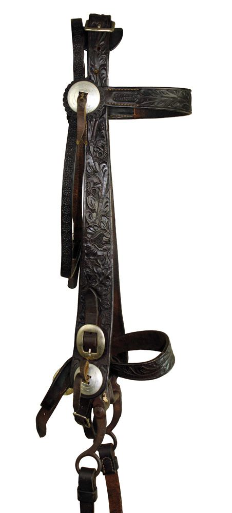 Great widecheek fully flower tooled bridle with nickel conchos.