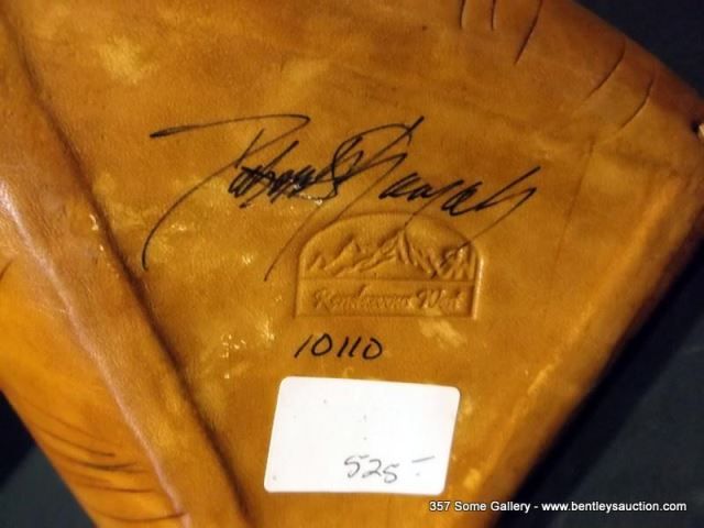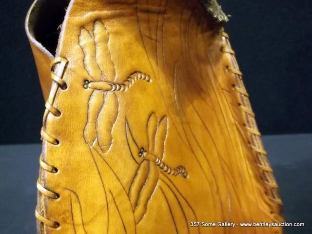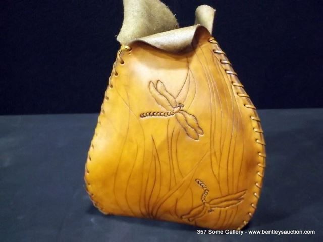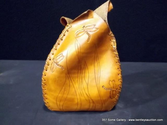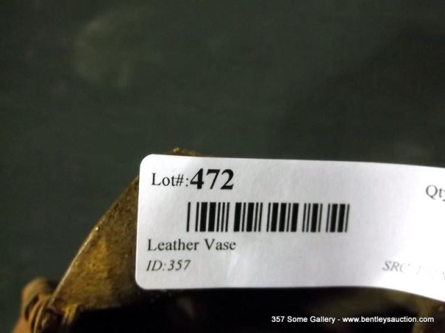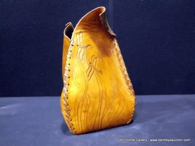 Tooled & Stitched Leather Vase by Robert Nayah 10" x 7 1/2" Retail: $525.00