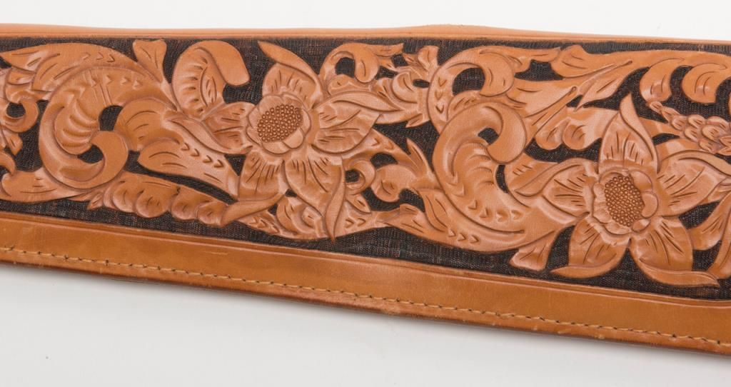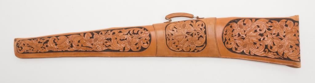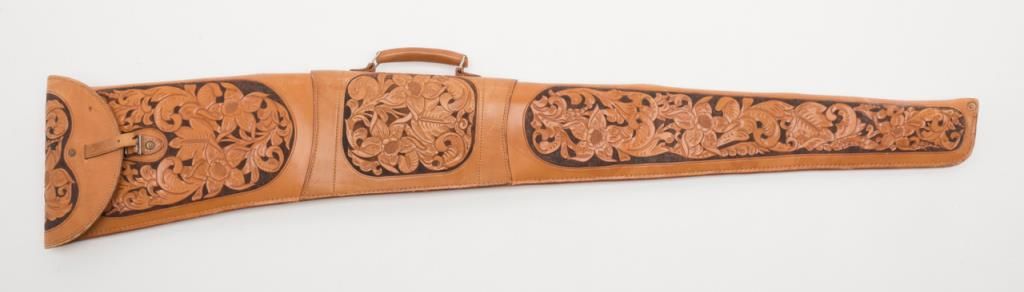 Tooled leather custom rifle case; 1950’s to 1960’s; tab broken. Est.: $250-$500.