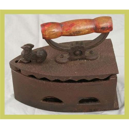</STRONG>Title: 1950 Belgian Tools Flat Iron Rooster </STRONG><P>Item #: 6-118-0</P><P>Comment: This old timey flat iron makes a great book-end for cookbooks in your kitchen or on a bookshelf!</P><P>Condition: Wooden handle shows wear and some rust due to age.</P><P>Dimensions (in.): 8H 8.5W 4D </P><P>Age (ca.): 1950</P><P>Origin: Belgium</P><P>Style: Tools</P><P>Material: Cast Iron</P><P>Object: Flat Iron</P><P>Subject: Rooster</P><P>Piece Type: Vintage Kitchenware/Copper & Brass/Tools</P> #NTR# Belgian Rooster Flat Iron Tools Cast Iron
