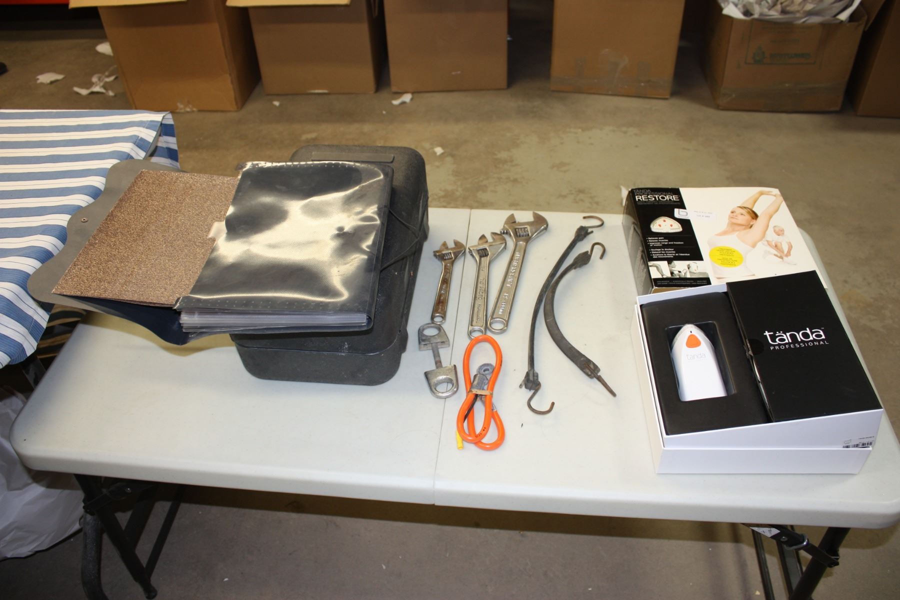 Tools, Folder of Sandpaper and Tanda Light Therapy Treatment