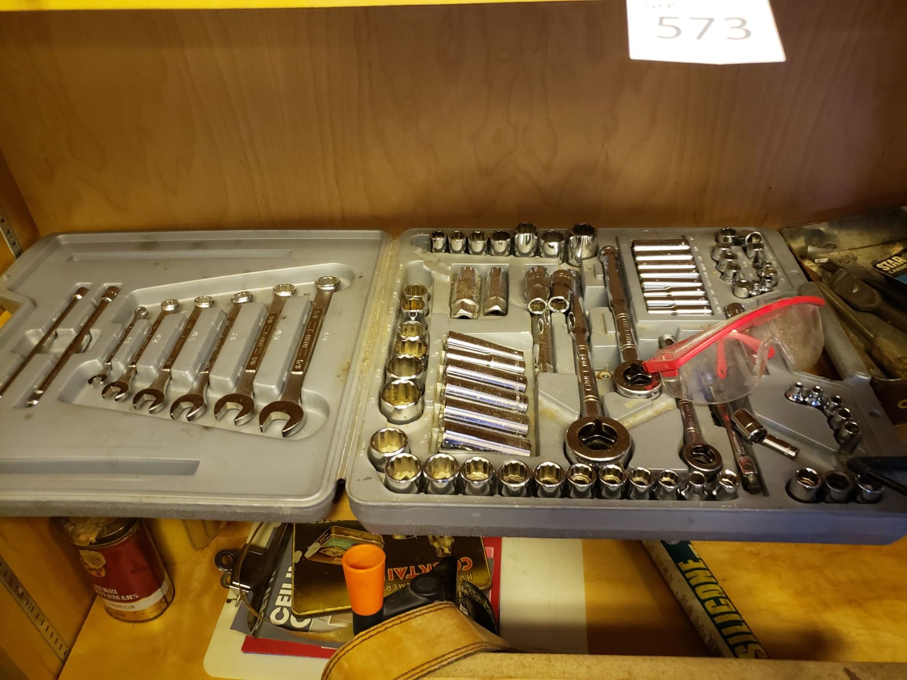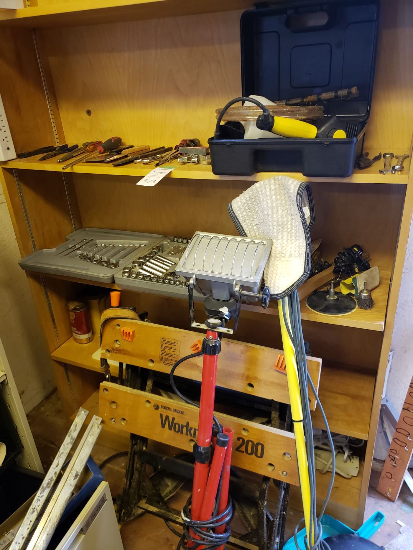 Lot includes work light, work bench, Wagner power painter, case of wrenches and sockets, and more. Bring packing boxes to category C between 11am and 12pm.
