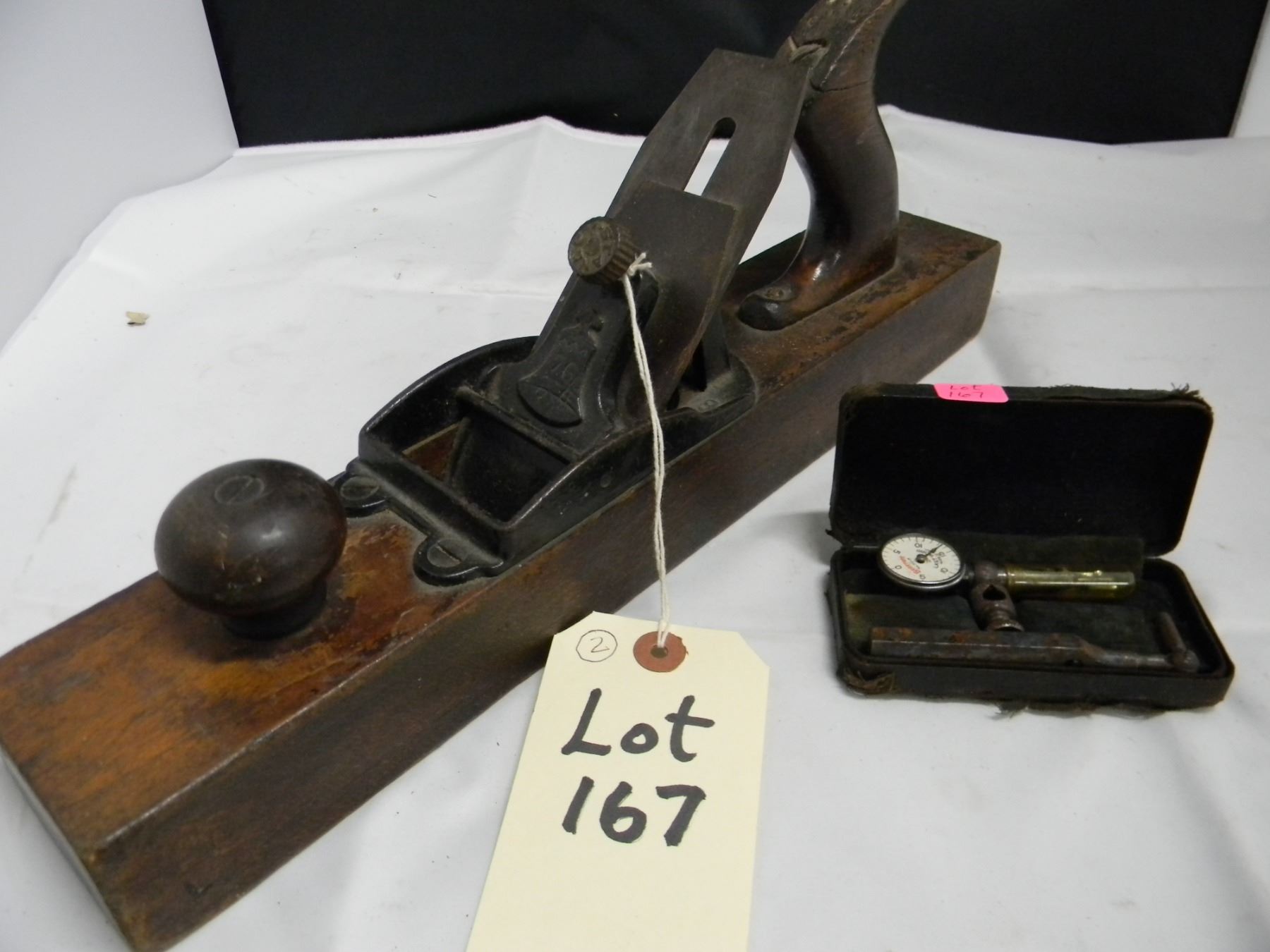 Vintage Stanley plane; 1876 Liberty; model 127; 15” long;; Starretz measuring gauge