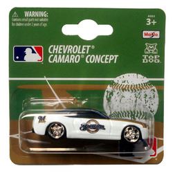 These 2010 Chevy Camaros are painted with your team's colors and logos. These 1:64 scale diecast beauties are ready for action or as a cube ornament that helps make the day go by. Approximate dimensions of the car are 1x1x3. Made in China by Top Dog Collectibles. Officially Licensed by Major League Baseball.Length: 1" x Width: 1" x Height: 3"