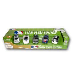 This collectors starter set is ready to roll. 5 diecast cars all in a gift box. Dodge Challenger MLB logo, Ford F150 - team logo, Chevrolet Suburban - team logo, Chevrolet Corvette - team logo, Porsche 911 - team logo.Length: 5" x Width: 5" x Height: 3"