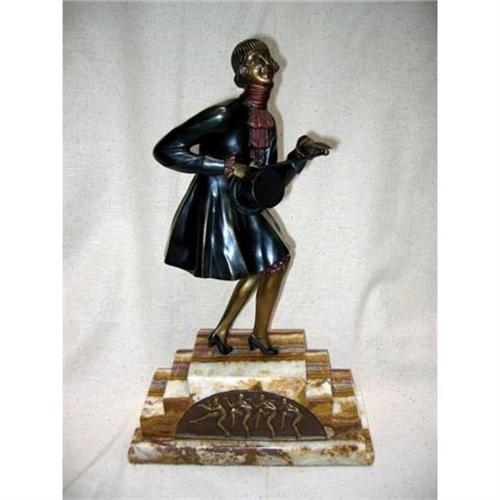 Art Deco Figurine cast in Lost Wax Bronze in the style of D.H. Chiparus Her Title is "TOP HAT"