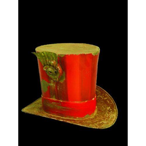 Top Hat Tin Trade Symbol, Some paint loss throughout otherwise good condition, 11 inches tall and 16 inches diameter.