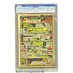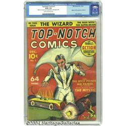 <B>Top-Notch Comics #1 (MLJ, 1939) CGC GD/VG 3.0 Cream to off-white pages.</B></I> An MLJ milestone, this issue came just one month after the publisher's first comic book, <B>Blue Ribbon Comics</B></I> #1, and featured the origin and first appearance of the Wizard. The enticing cover by the Unknown Artist is backed by interior art by Jack Cole, Edd Ashe, and Jack Binder. Gerber rates this a "scarce" book. CGC notes, "Writing on 1st page in pencil. Puzzle filled in on 25th page in pencil." Overstreet 2004 GD 2.0 value = $579; VG 4.0 value = $1,158. <BR><BR><B>Important notice:</B> Heritage usually auctions material at the rate of 200-250 lots per hour. On some occasions eBay Live bid software or the Internet may not be able to keep up with the pace of the auction. We recommend placing a realistic absentee bid now as insurance to avoid disappointment. Occasionally the auctioneer may eliminate or reject an eBay Live bid, and the auctioneer may also reopen a lot after the close of the eBay live bidding (usually because we missed an audience bid), and may reject your bid even if it shows you as the winning bidder. By bidding via eBay Live, you agree that Heritage may award the lot to another bidder at its sole discretion under the circumstances described above or any other reasonable circumstances. Since eBay bids are not shown to us until we open the lot on the floor, we treat those bids just like floor bids. In most cases the floor responds before the eBay bid is presented to us, due to Internet lag time, so for consistency we have made it a policy that floor bids are always considered first over tie eBay live bids. Also please note that all Heritage lots purchased through eBay Live carry a 20% Buyer's Premium. Please make sure you read the Terms and Conditions before you bid. </span></font></tr></table></td></tr></table>