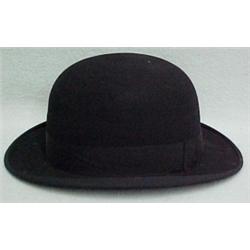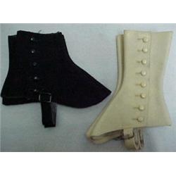 Top hat, bowler hat and two pair of spats, black sheared beaver top hat 7" high made by Miller, size 6 7/8 man's bowler hat made by The Kleinhans Co.and called "The Varsity Hat", man's black spats size 8, and lady's white spats size 1, hat box included, as is Estimate 120/180