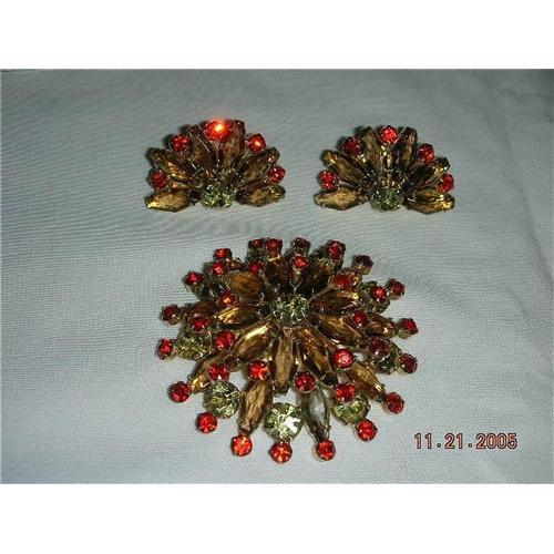 <tr><td>Title:Topaz/Citrine/Ruby Rhinestone Brooch & Earrings</td></tr>