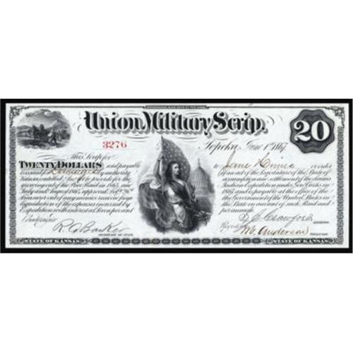 Topeka, KS Union Military Scrip 6-1-1867 $20 PMG