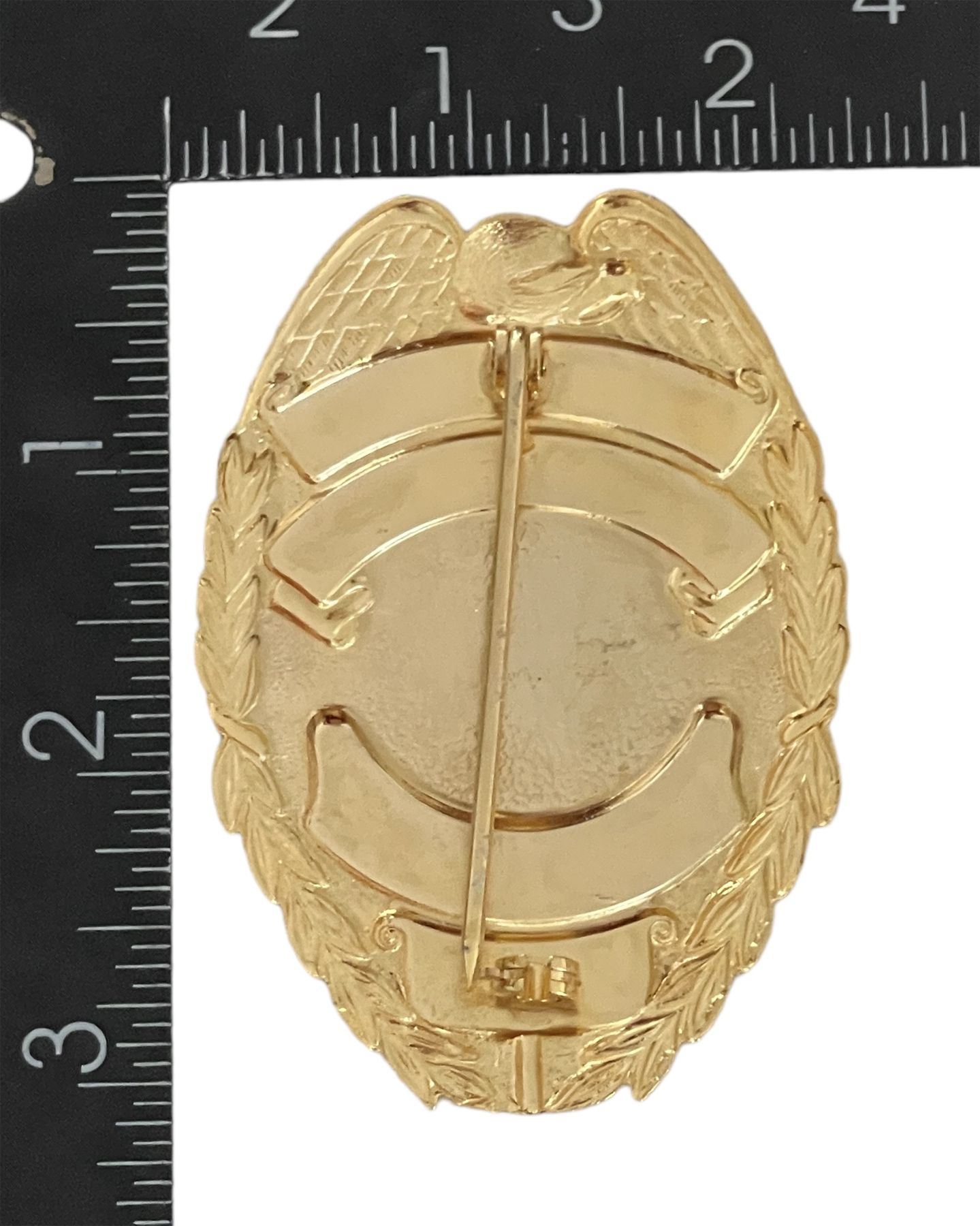 #123. Brass metal with enamelling. Badge has a pin fastener.