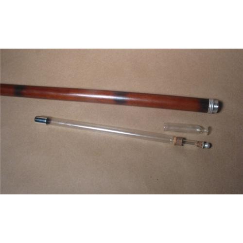 English toper's cane with original liquor vial and shot measure. Hardwood shaft with silver plate knob. c.1890 Length 36ins